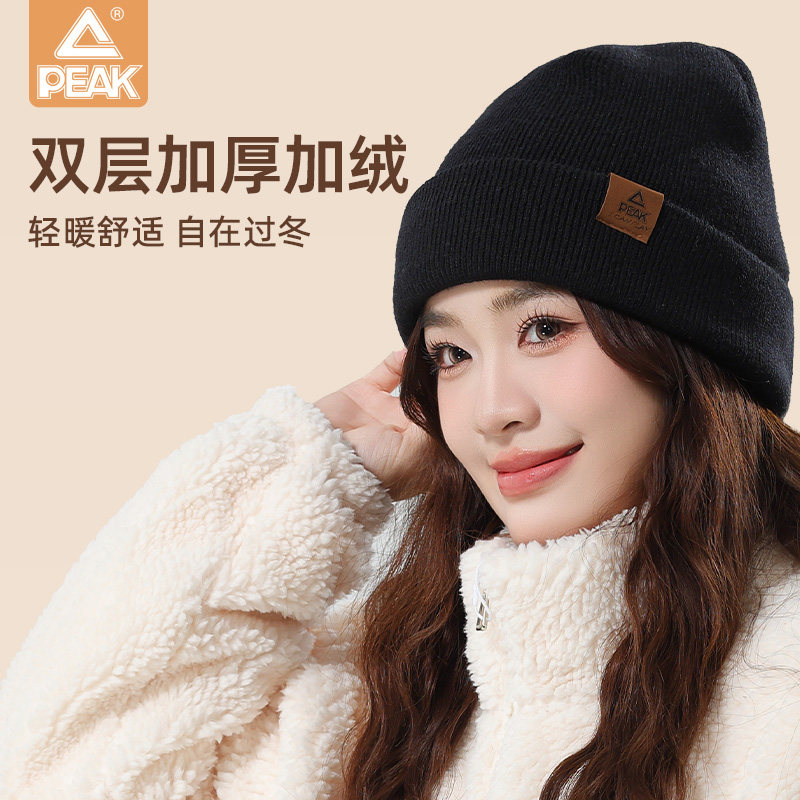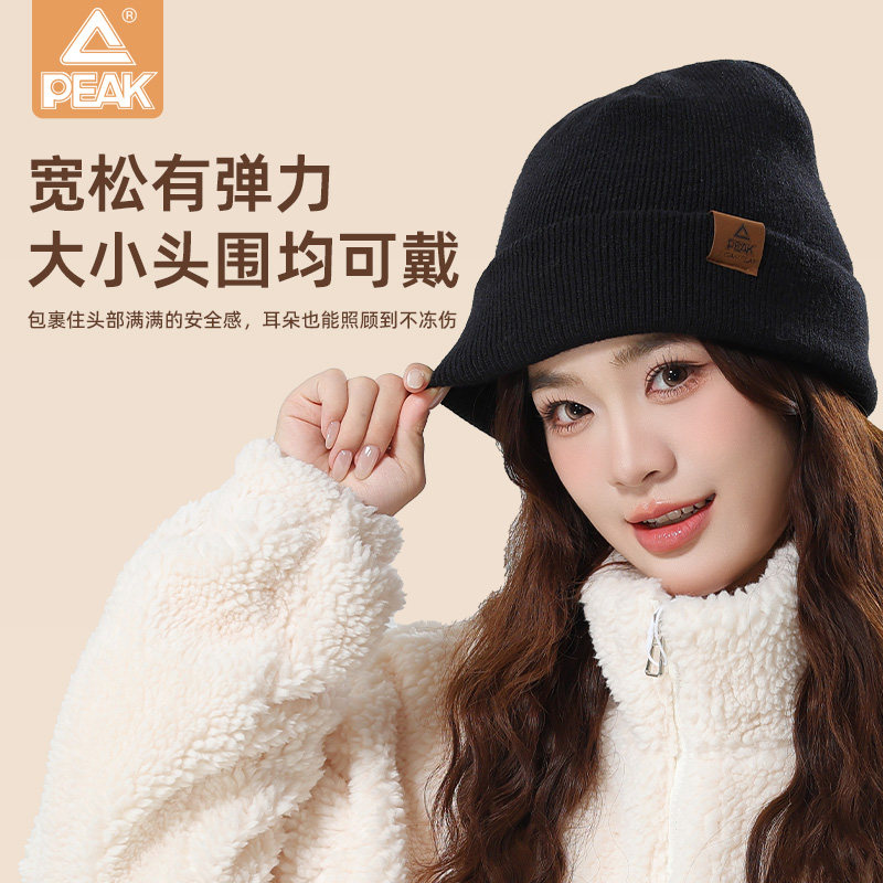 匹克保暖针织帽女男秋冬2025新款显脸包头堆堆大头围帽子滑雪徒步
