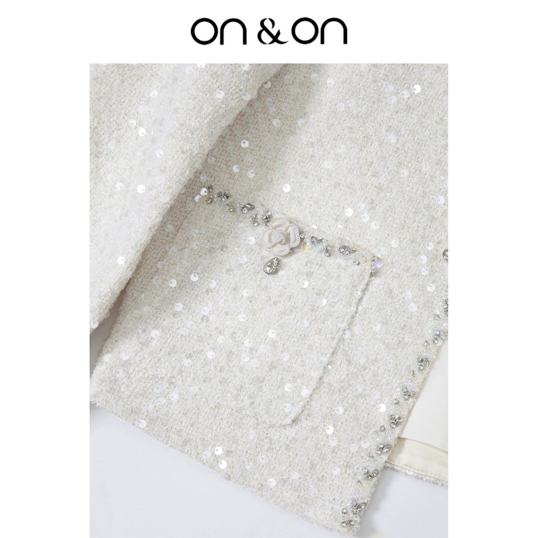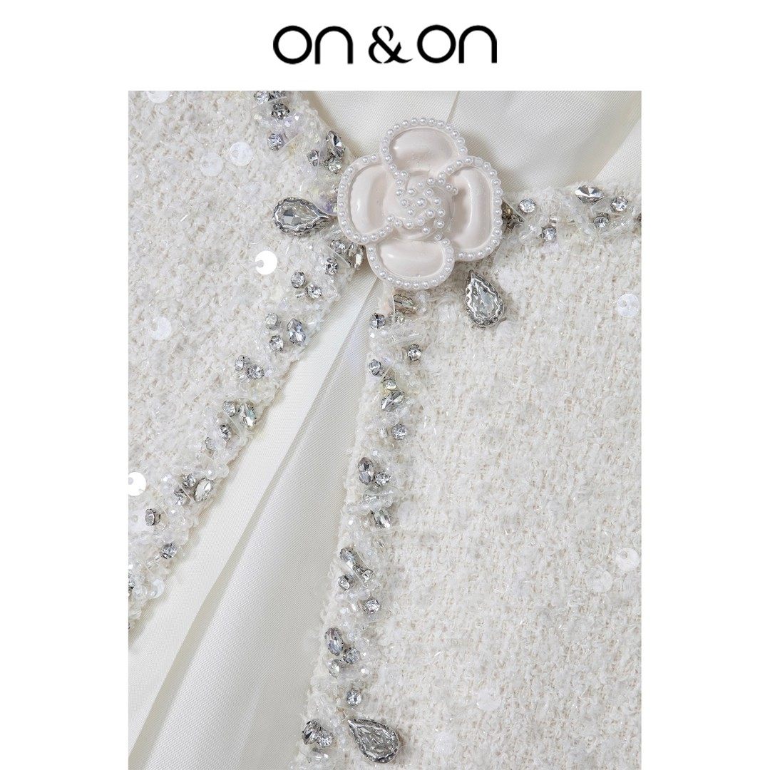 ON&ON/安乃安25冬季高智流光韩系轻熟风钉钻轻奢珠片羽毛套装裙