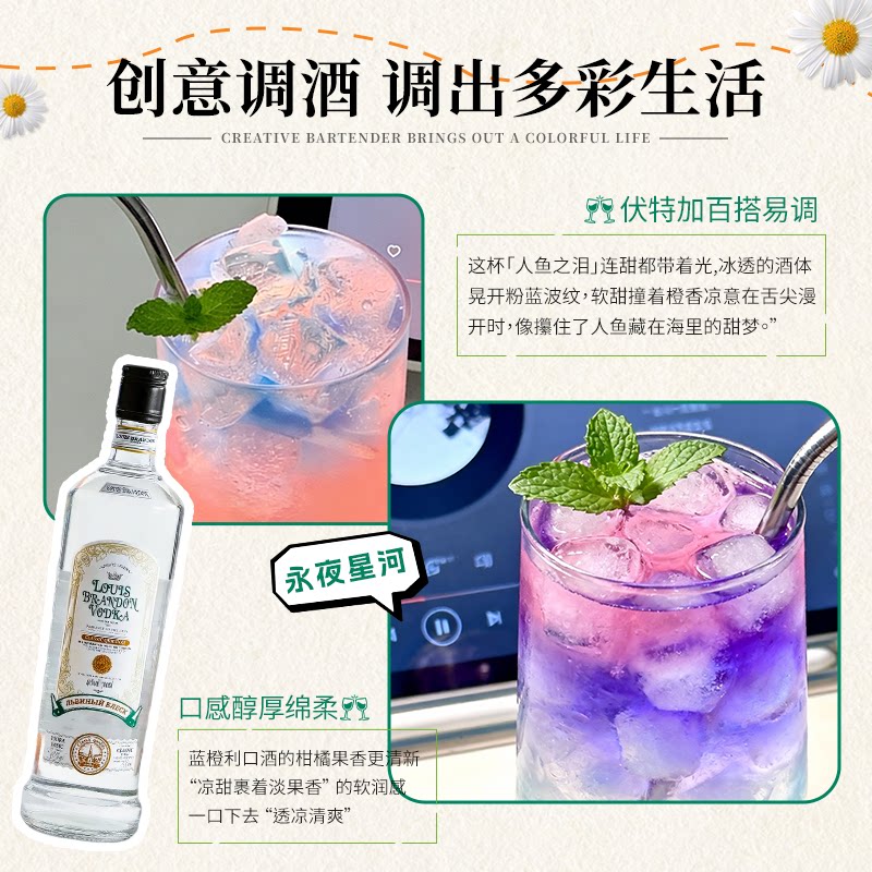 洋酒伏特加原味Vodka鸡尾酒DIY调酒基酒伏特加聚会自饮700ml