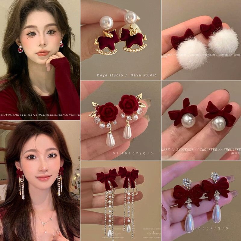 新款珍珠红色小马耳钉耳环秋冬女2025爆款小众独特高级感轻奢耳饰