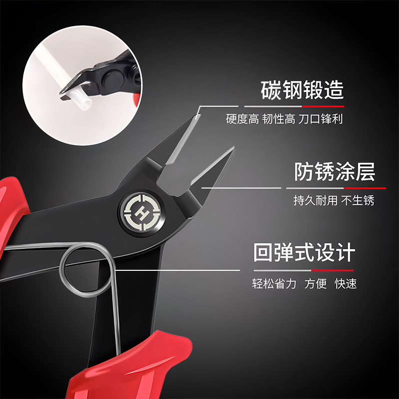 三堡剪线钳斜口/水口钳 进口电子剪钳电工修剪毛边剥线皮 剪电子针脚网线同轴电缆光纤凯夫拉剪刀HT-109/C151