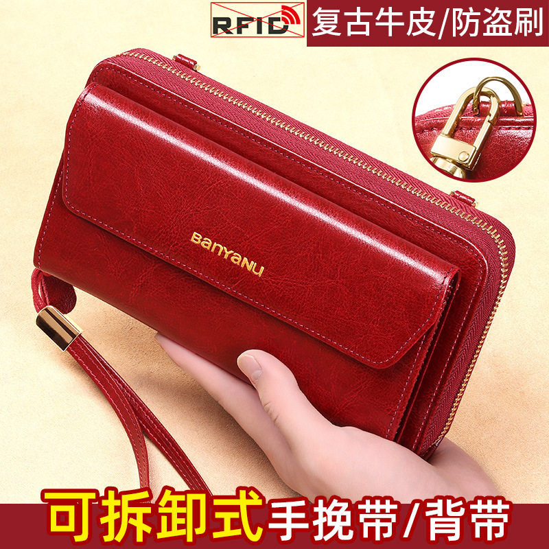 钱包女真皮2025新款大容量手拿包单肩斜跨手机包简约时尚小包包女