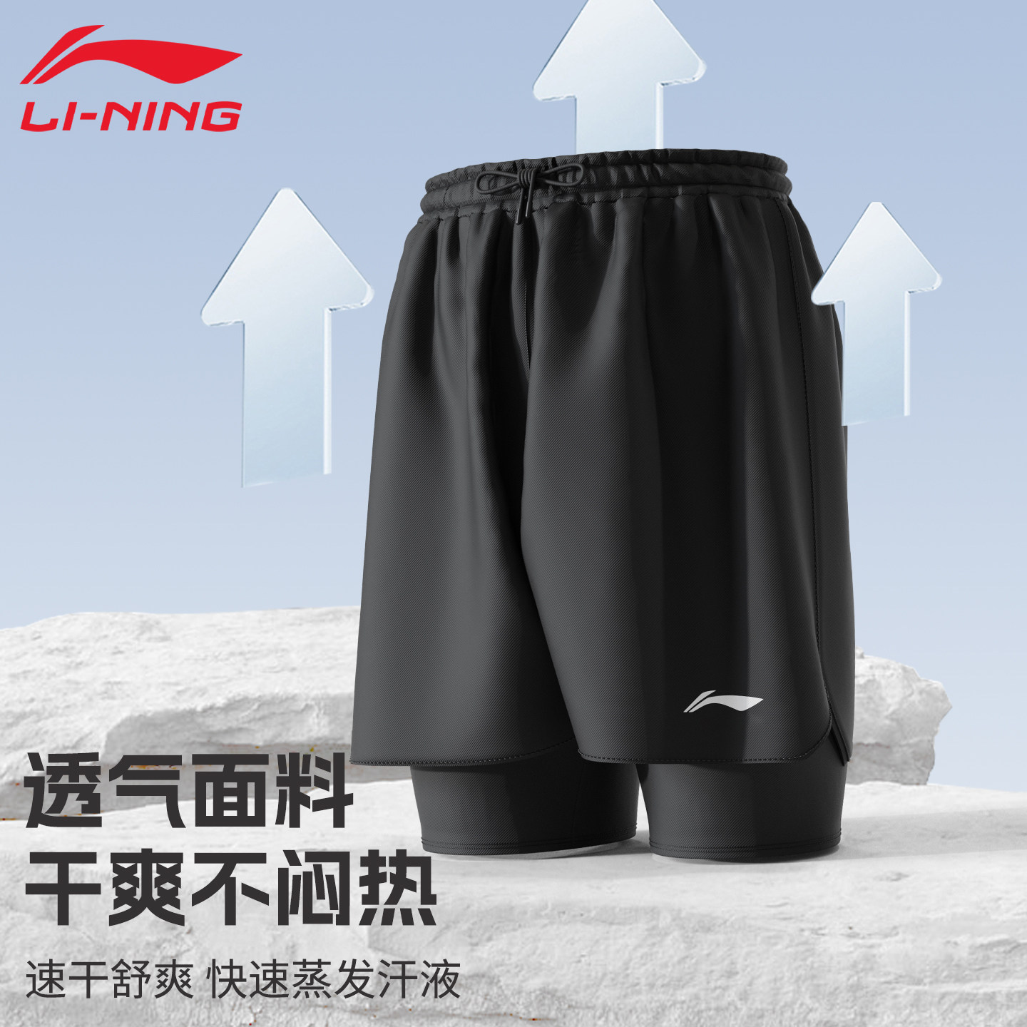 李宁泳裤男款成人防尴尬沙滩裤2025新款五分双层速干游泳短裤海边