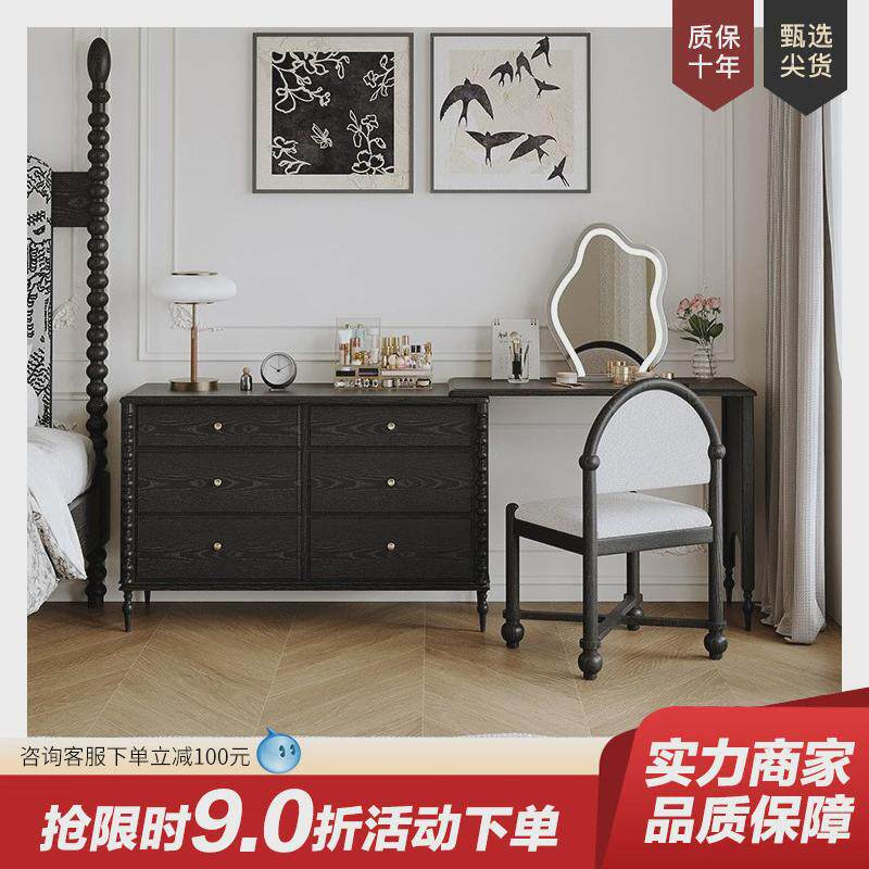 恒法式复古美式梳妆台斗柜一体卧室高级感设计师沃实木转角化妆桌