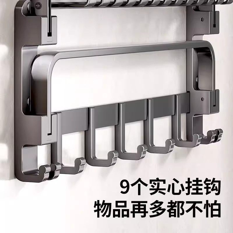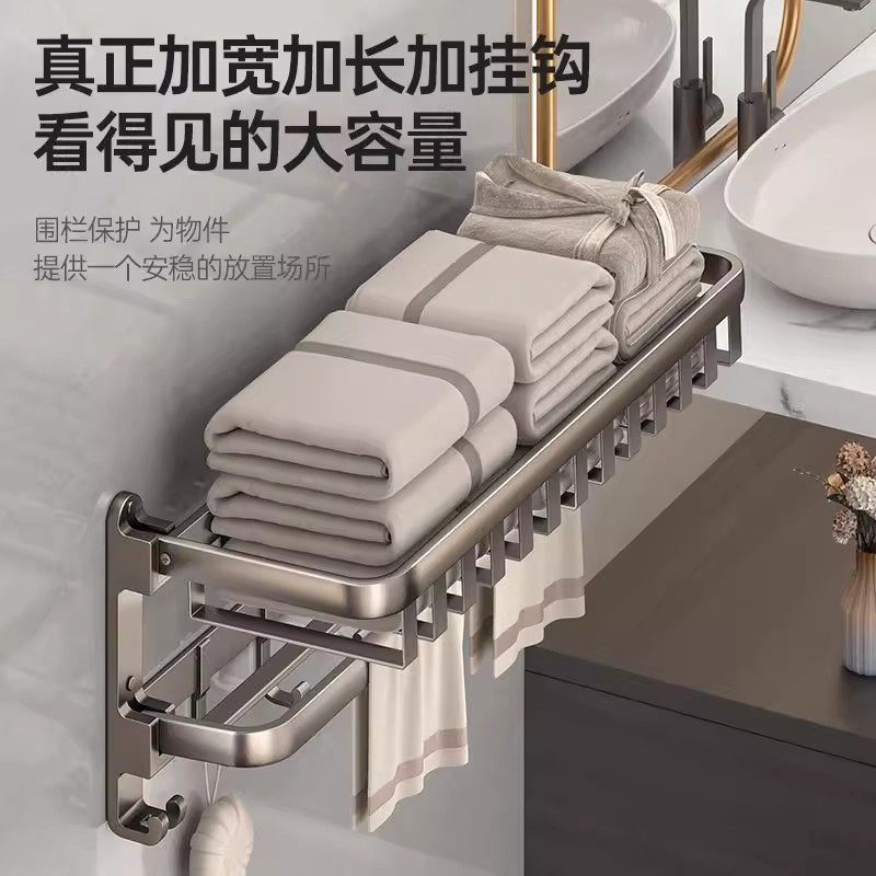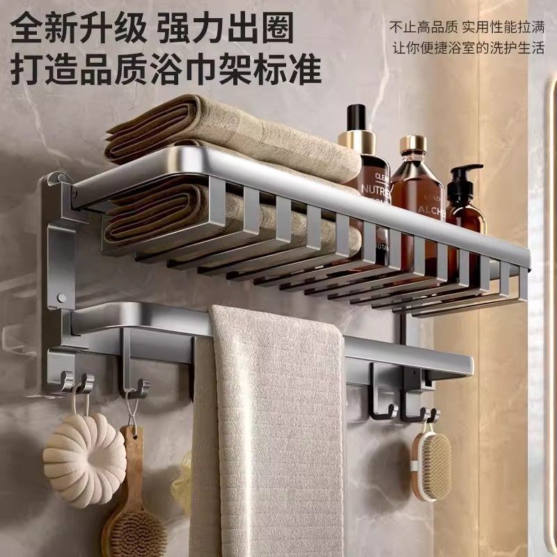 枪灰太空铝毛巾架卫生间置物架免打孔浴室架子一体挂件浴巾架收纳
