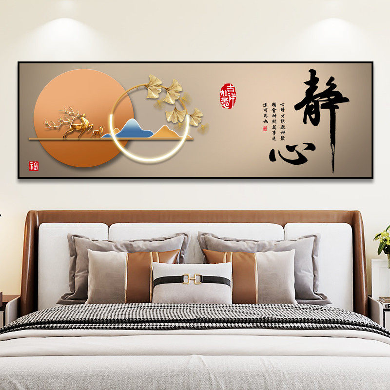 床头画卧室挂画装饰画自粘贴画新款背景墙轻奢高级感静心如意贴画