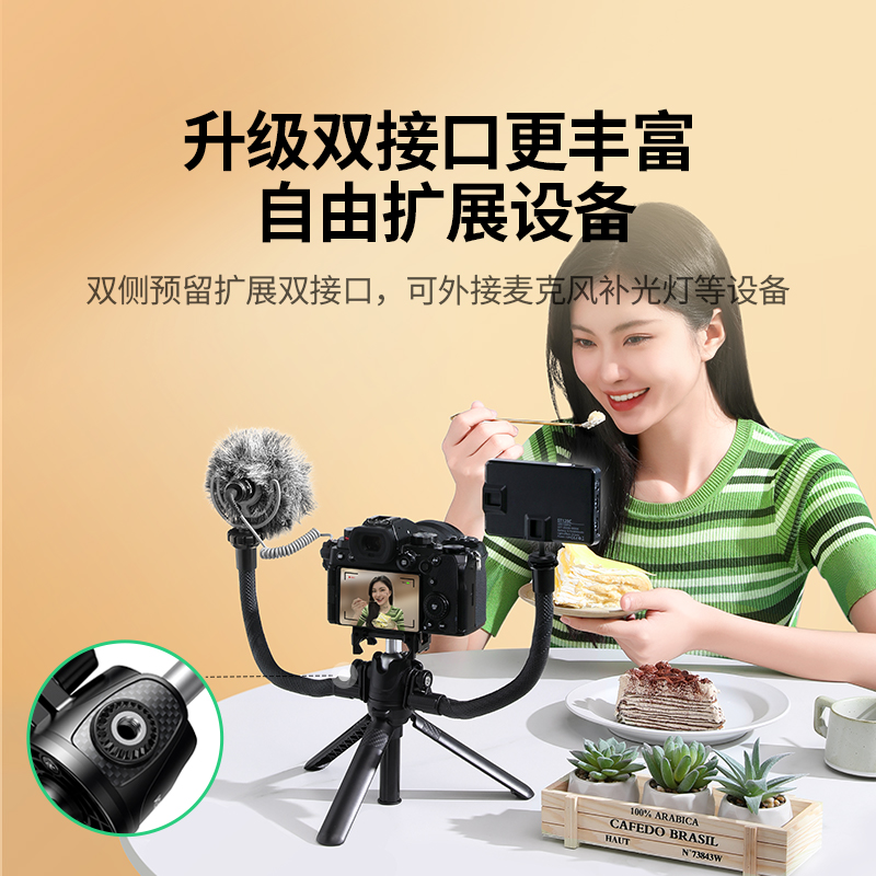 绿联相机支架桌面迷你便携手持微单相机三脚架适用佳能g7x2索尼zve10大疆pocket3手机自拍杆云台拍摄三角架