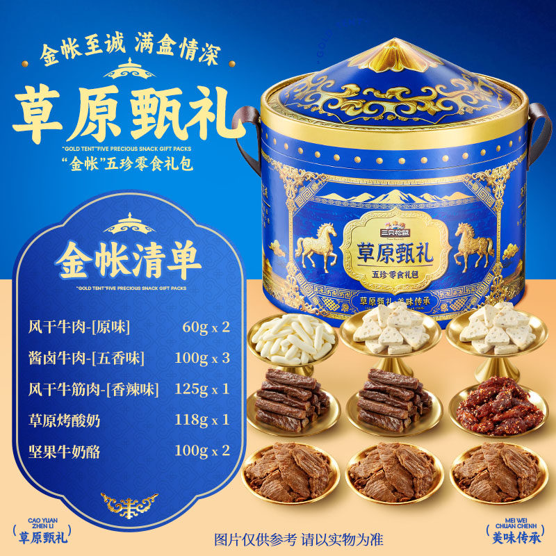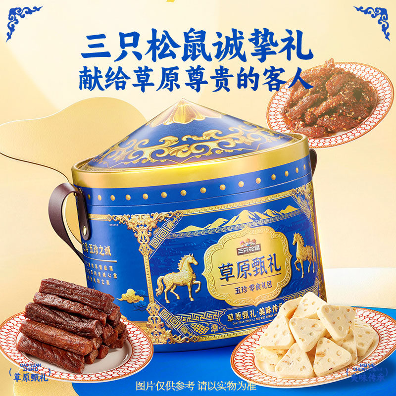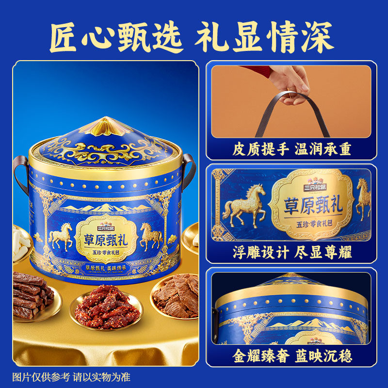 三只松鼠草原甄礼863g解馋小吃休闲零食牛肉烤酸奶年货礼盒送礼