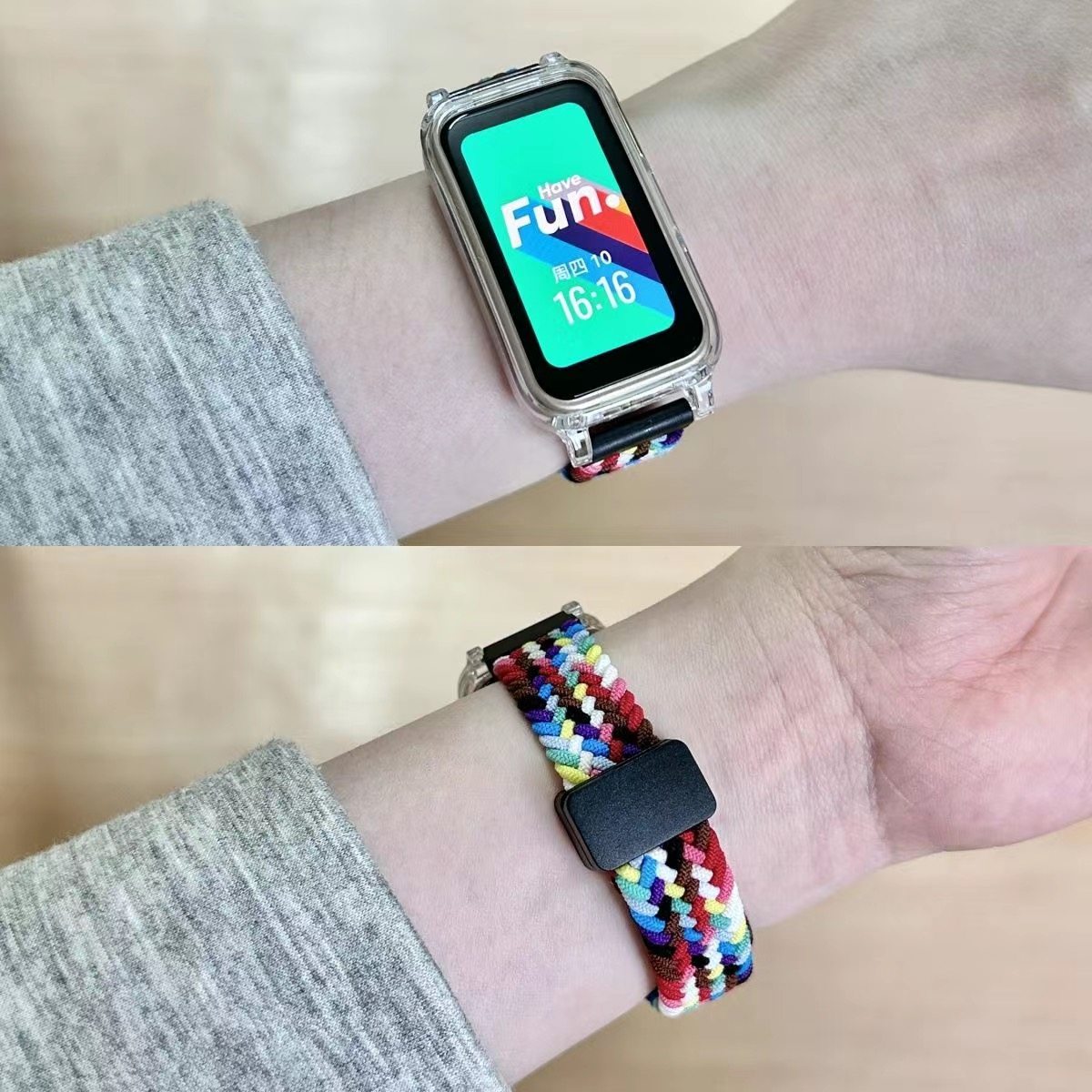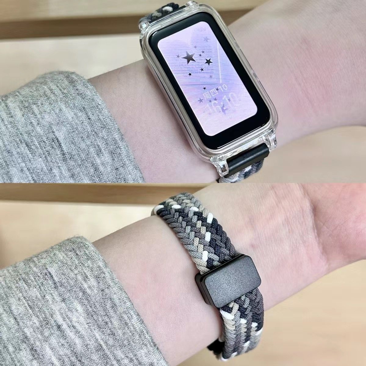 适用华为手环8/9/10表带磁吸编织智能手表尼龙弹力腕带NFC版运动手环透气磁扣表链男女生夏天配件