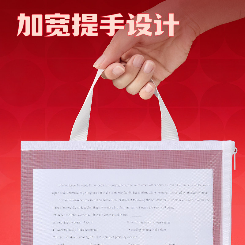L型科目分类袋手提透明文件袋拉链式网纱大开口学生拎书袋考试