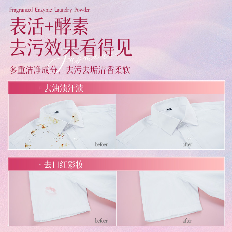 260g酵素洗衣粉温和护色汗渍洁净留香洗涤剂家用实惠去渍香氛