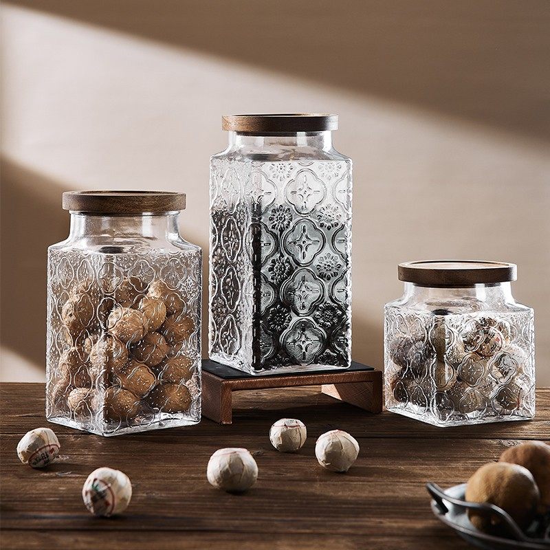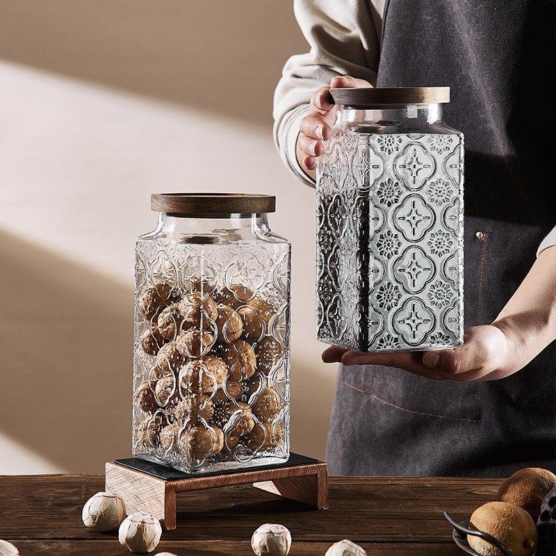 复古海棠花玻璃密封罐食品级储物罐子零食收纳罐茶叶储存罐大容量