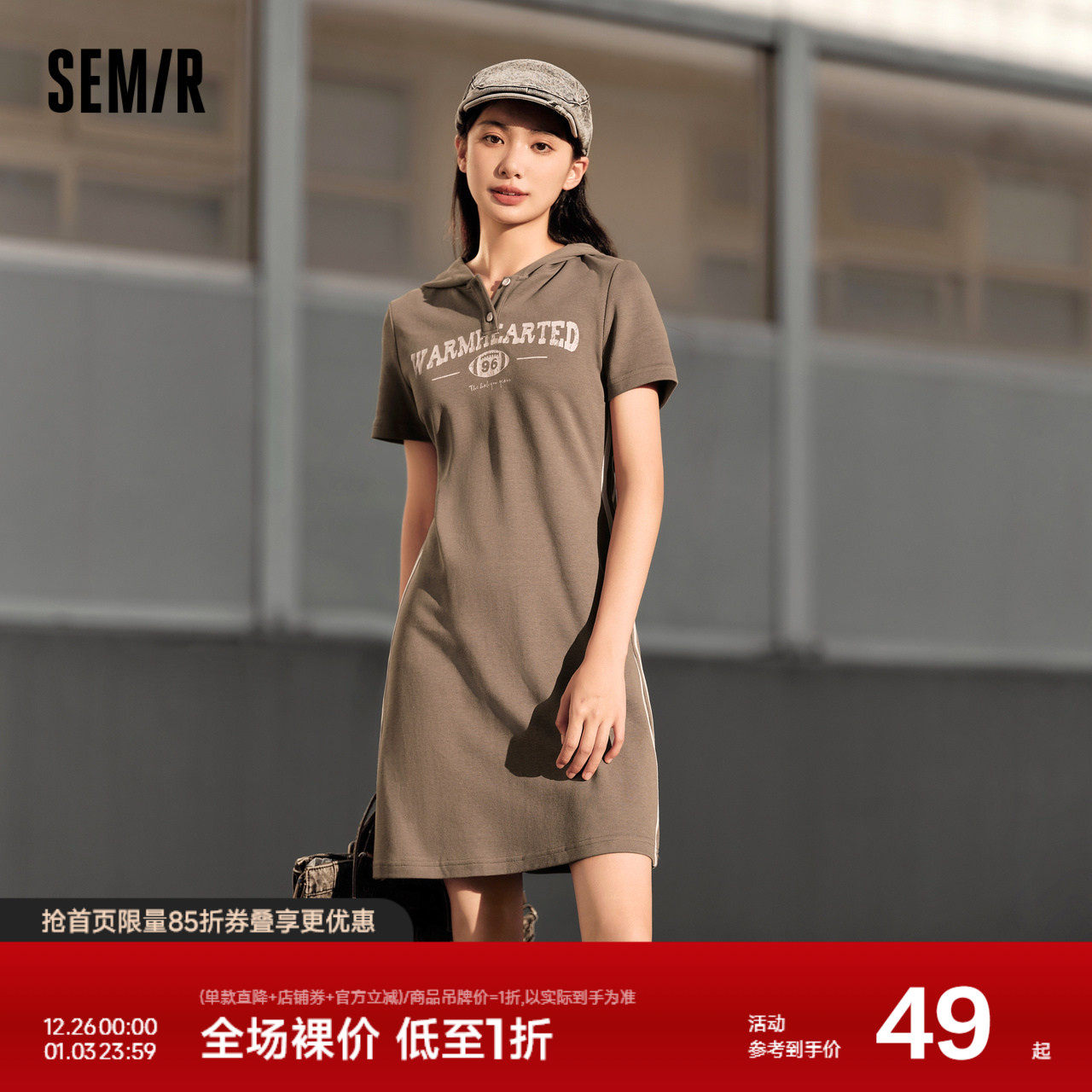 森马连衣裙女字母印花复古潮流休闲2024新款夏修身连帽短裙运动风