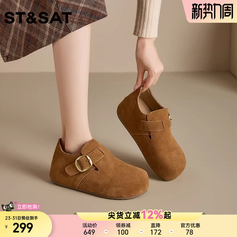 星期六时尚百搭保暖舒适软底勃肯鞋简约平底深口加绒懒人鞋女鞋