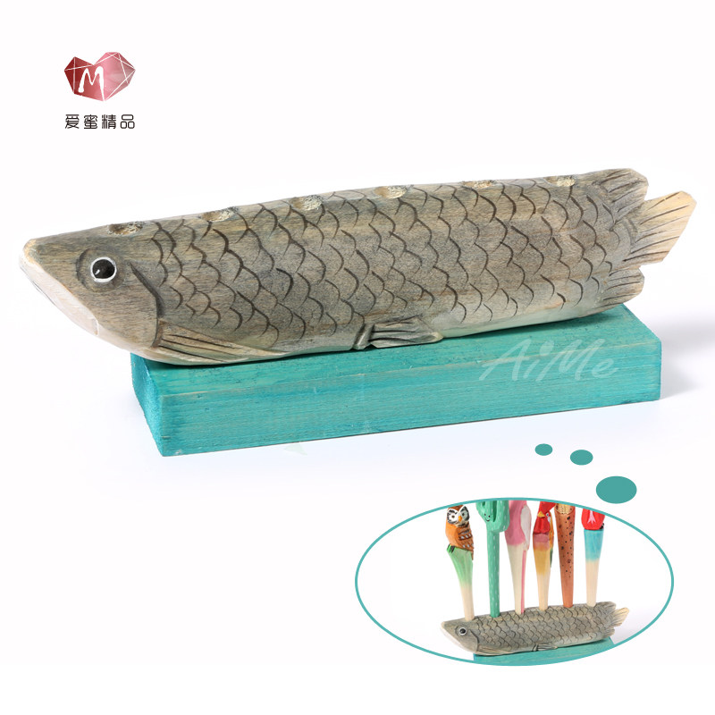 工艺礼品笔筒摆件创意木雕动物火烈鸟笔筒艺术文具收纳儿童节礼物