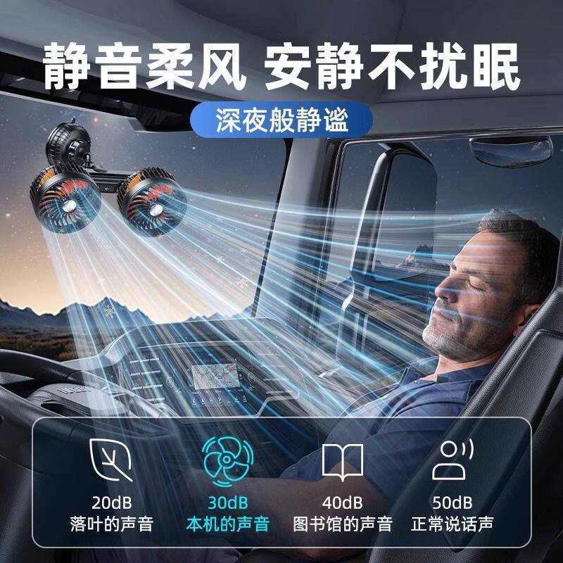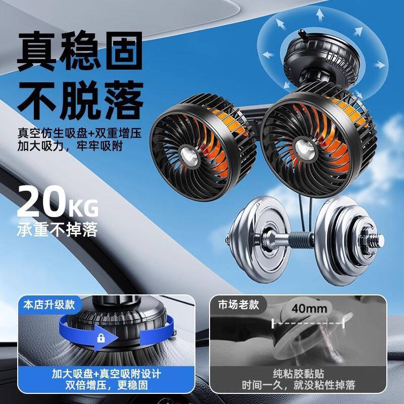 充电款车载电风扇汽车内吸盘吸顶四轮24V货车12v伏