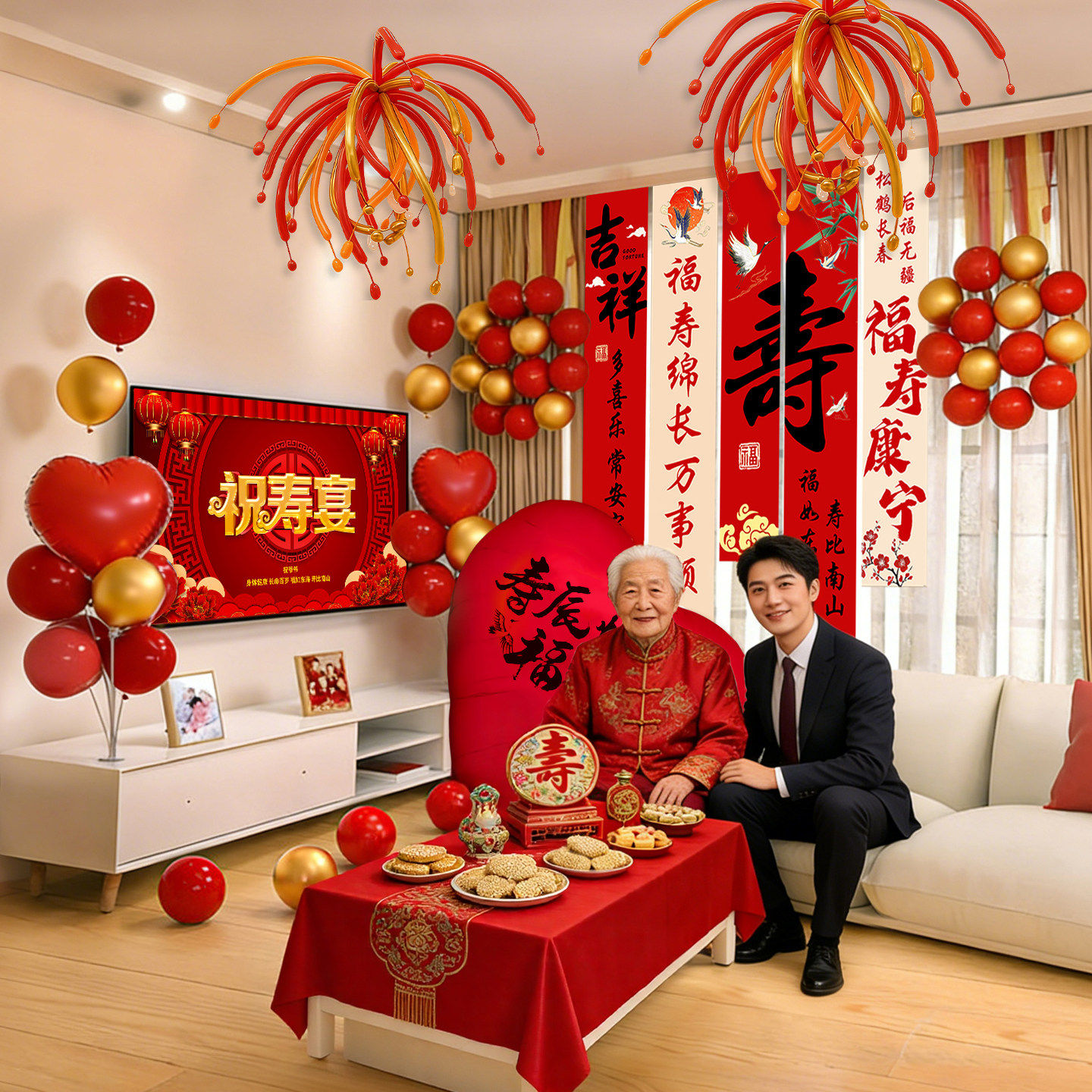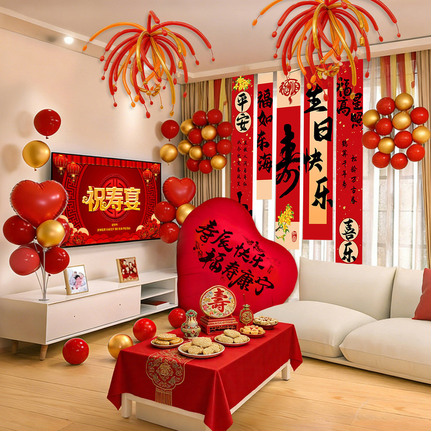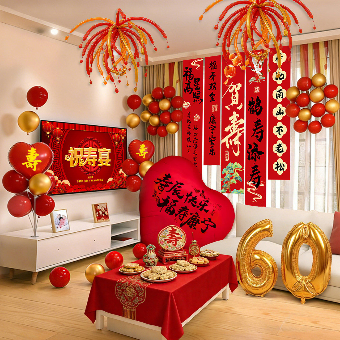 寿宴场景布置气球条幅套装60装饰老人祝寿宴仪式生日立柱背景客厅