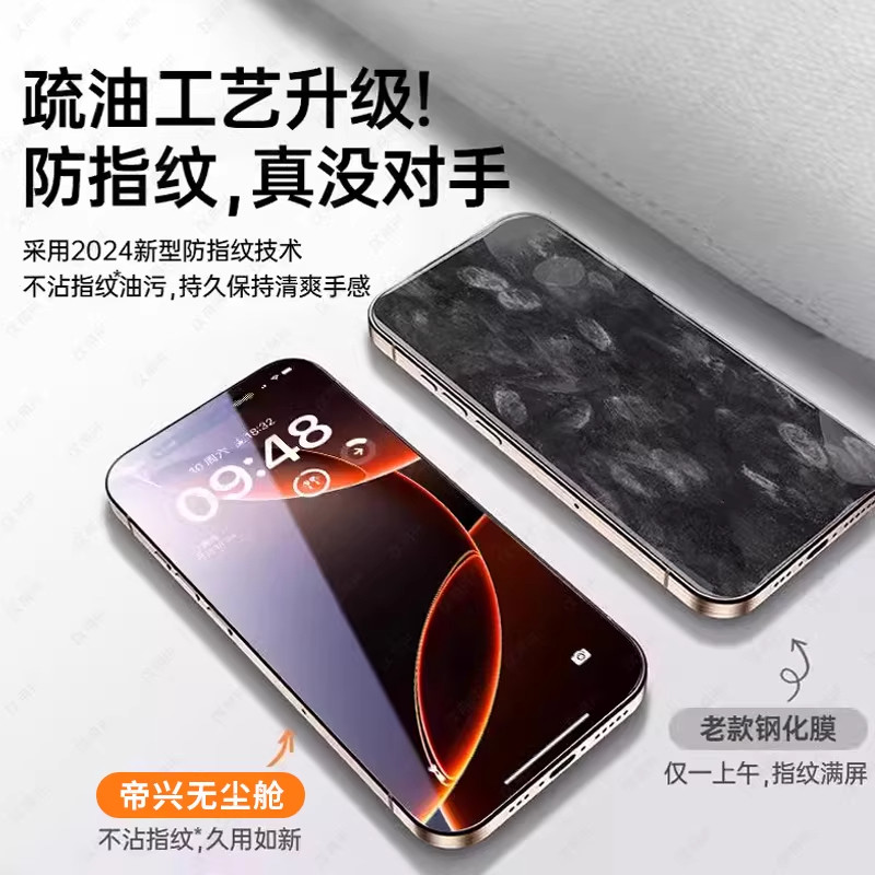 [不沾指纹]适用iPhone17/16钢化膜苹果15/14手机13promax防窥12全屏XR/xsmax全包11贴X防摔8por高清plus