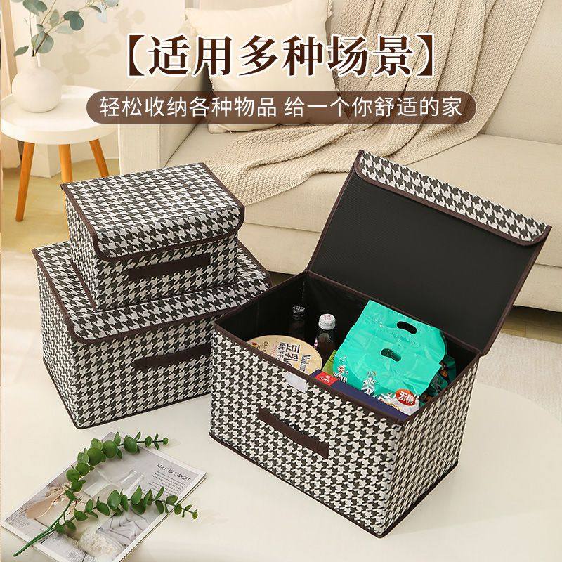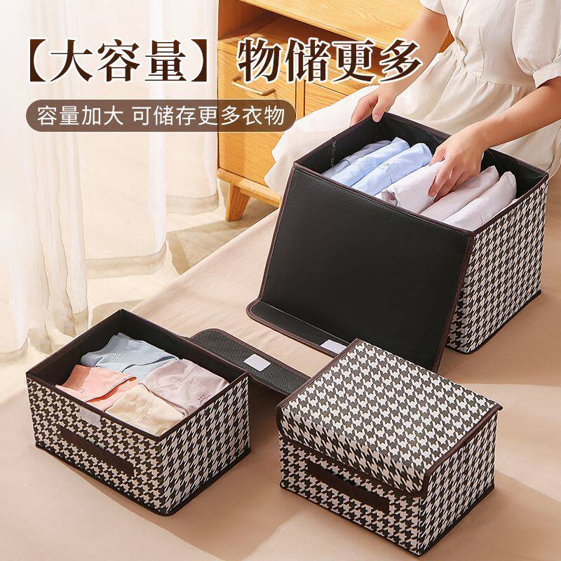 衣服收纳箱千鸟格家用衣柜分层整理收纳神器放衣物布艺折叠收纳筐