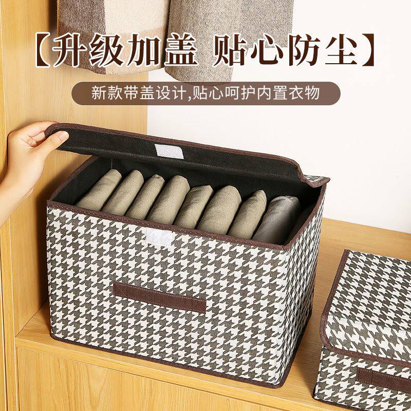内衣收纳盒衣柜衣服裤子收纳箱整理筐带盖衣物分隔折叠储物箱神器