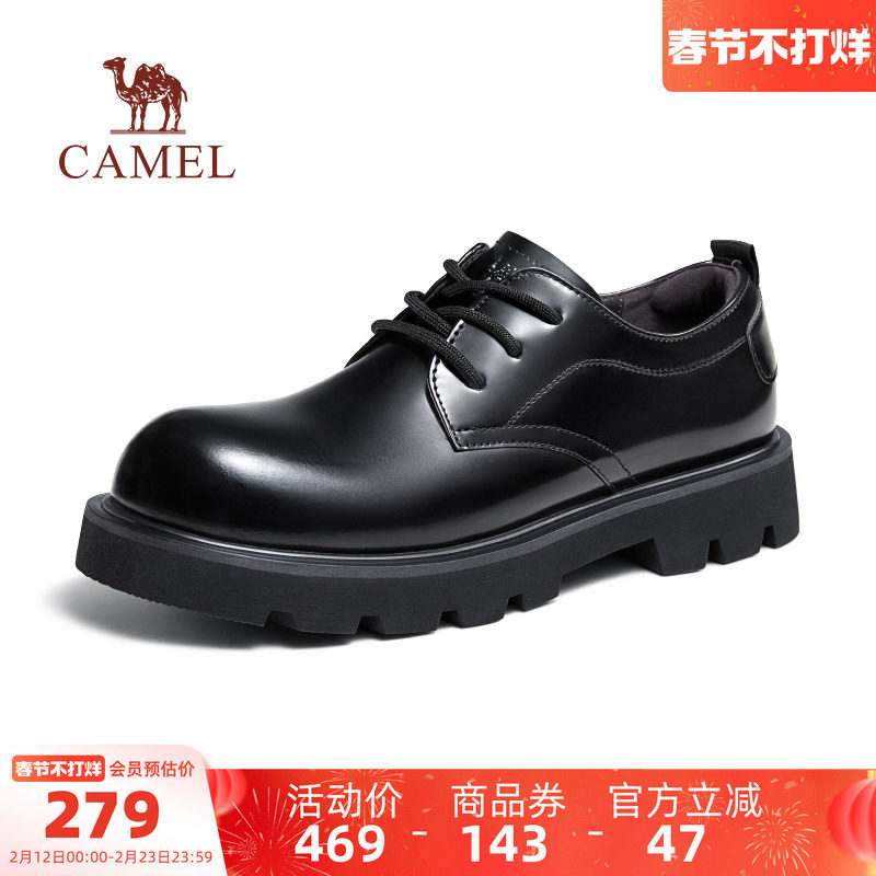 骆驼厚底亮皮德比鞋