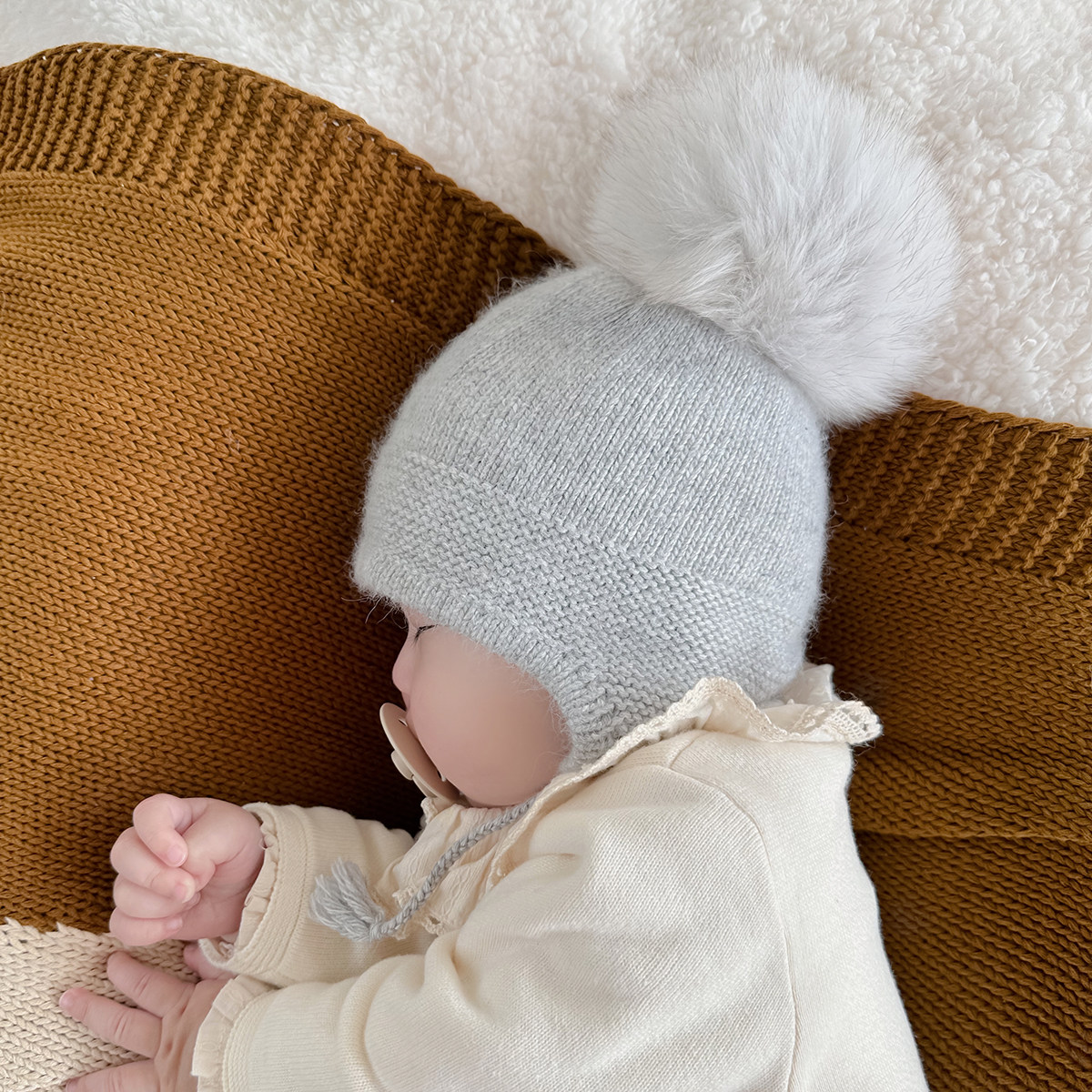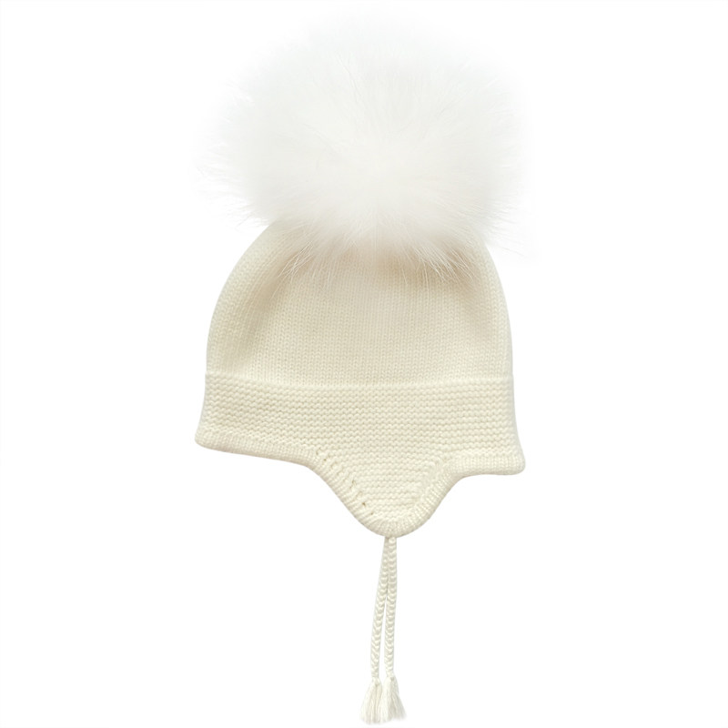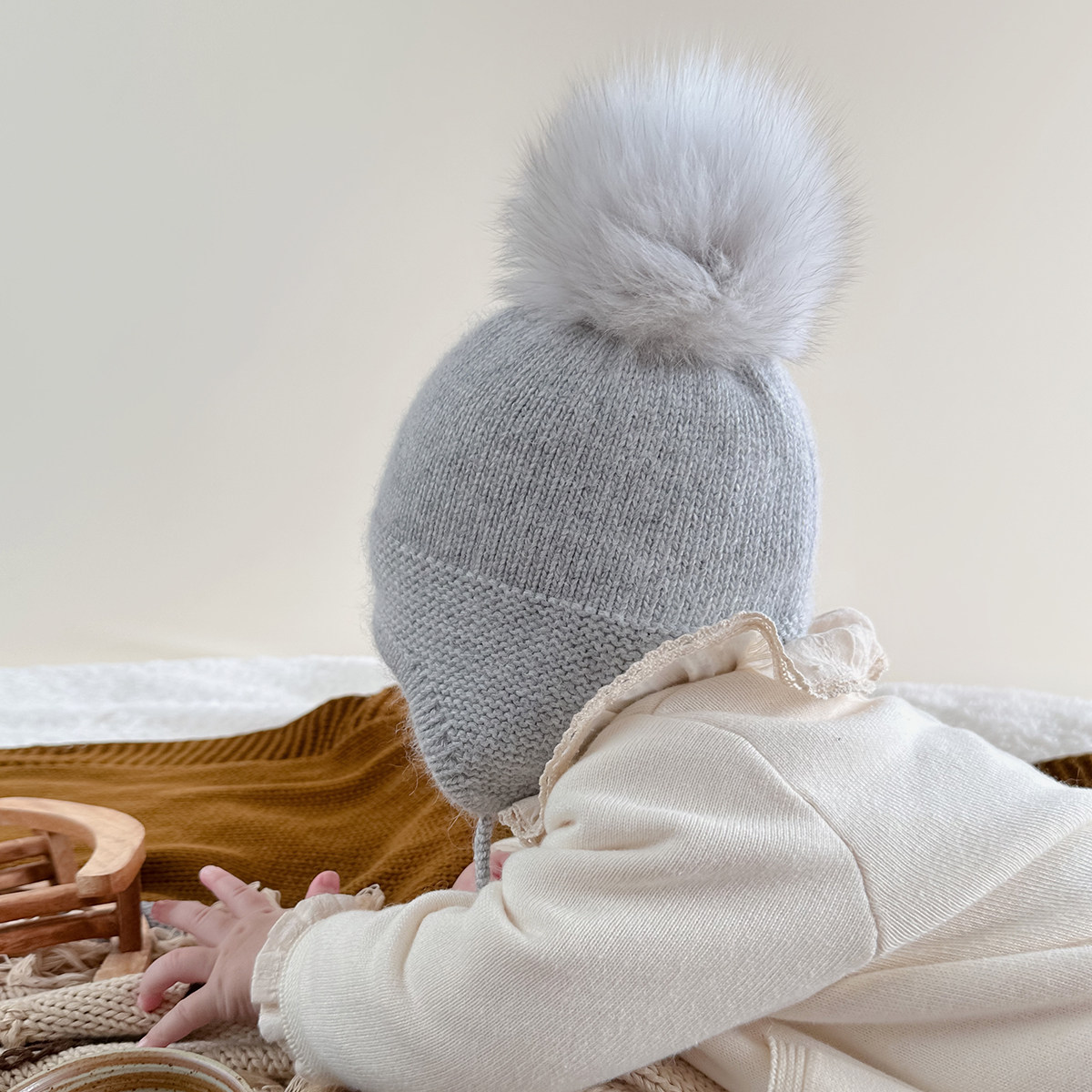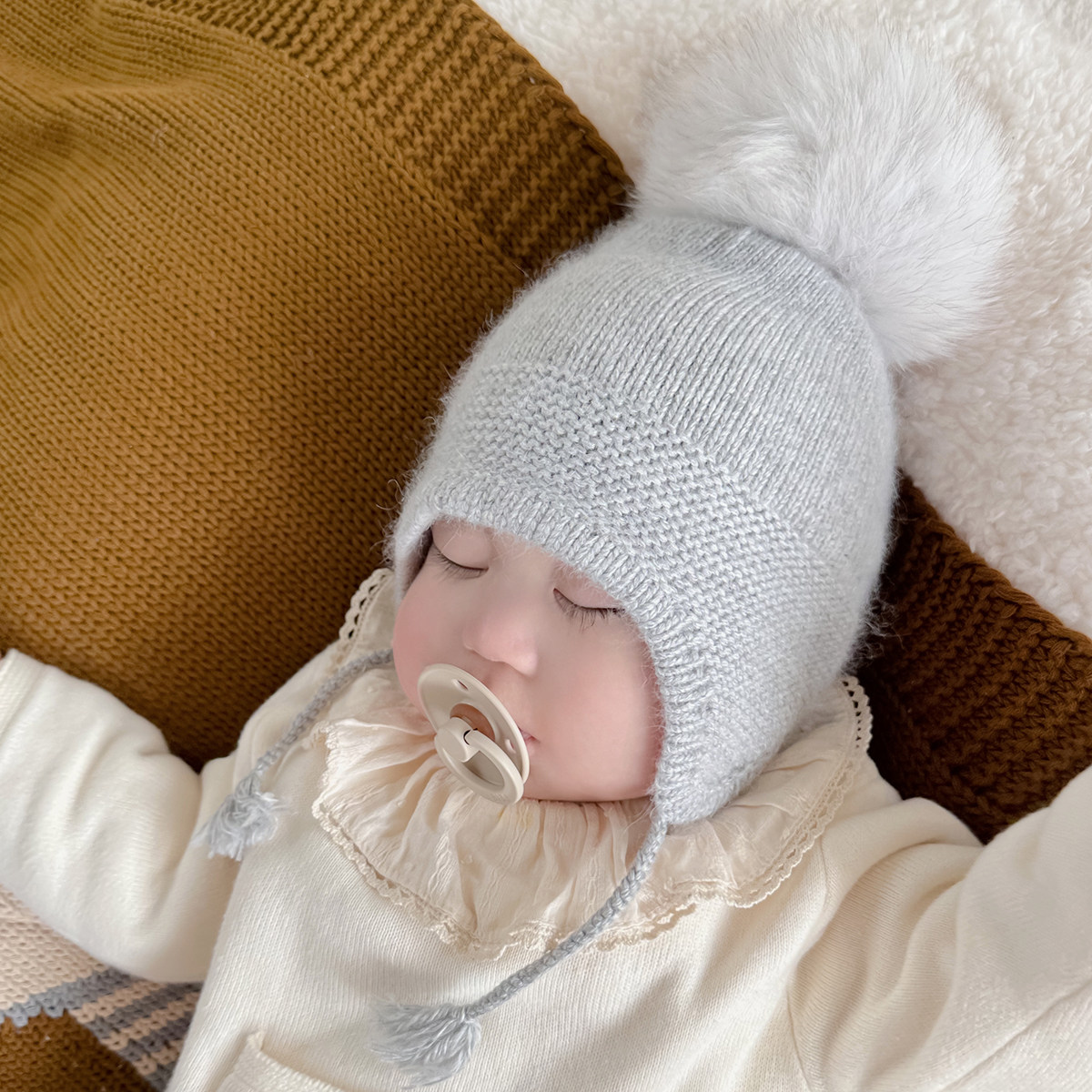 婴儿帽子秋冬貂绒针织毛线帽可爱超萌毛球保暖男女宝宝儿童护耳帽