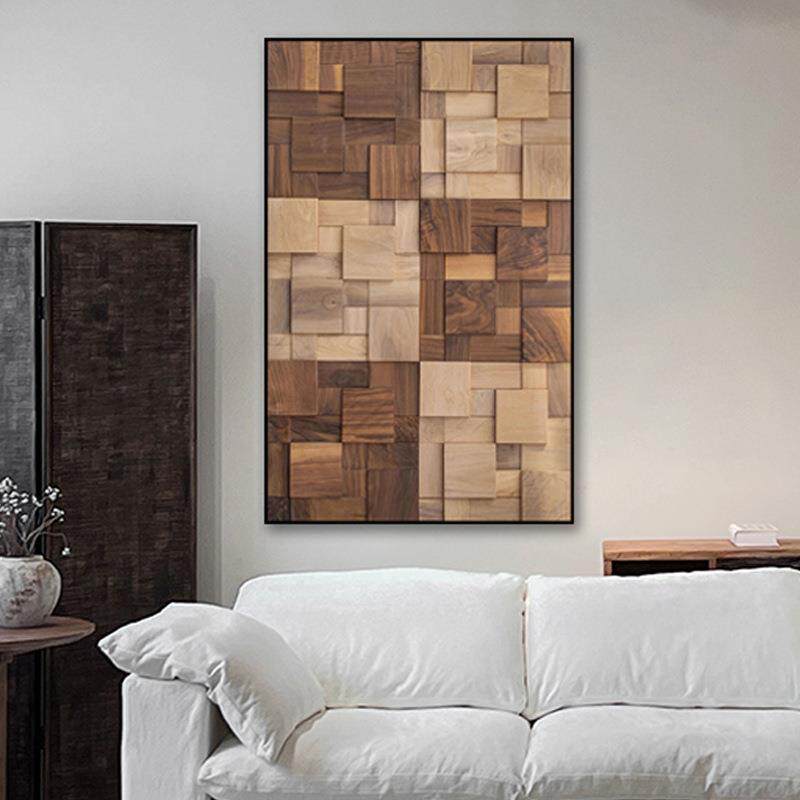 现代简约客厅沙发背景装饰画原木风走廊玄关壁画极简几何大幅挂画