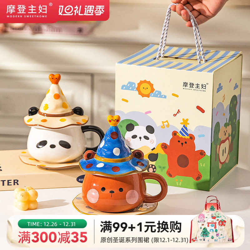 摩登主妇带盖咖啡杯陶瓷杯子家用马克杯乔迁搬家新婚礼物情侣水杯