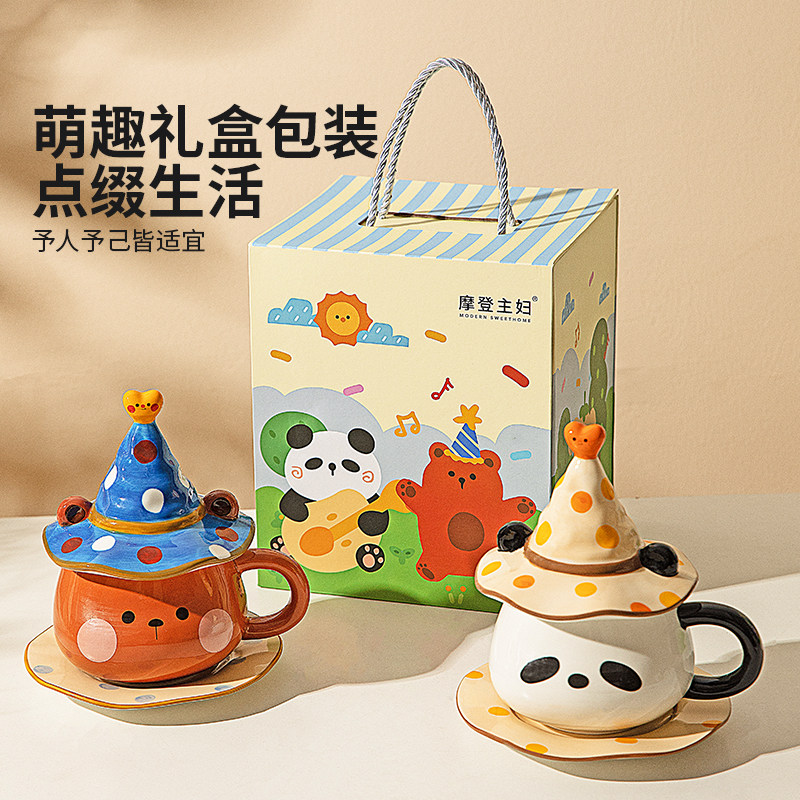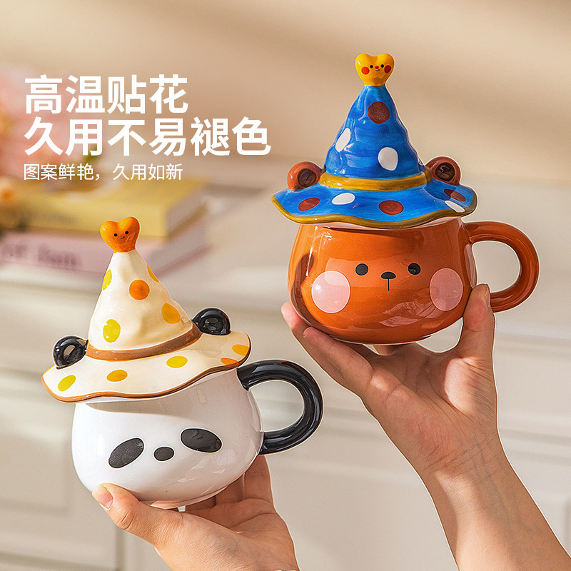 趣皿可爱陶瓷杯卡通马克杯家用办公室大容量咖啡杯情侣水杯牛奶杯