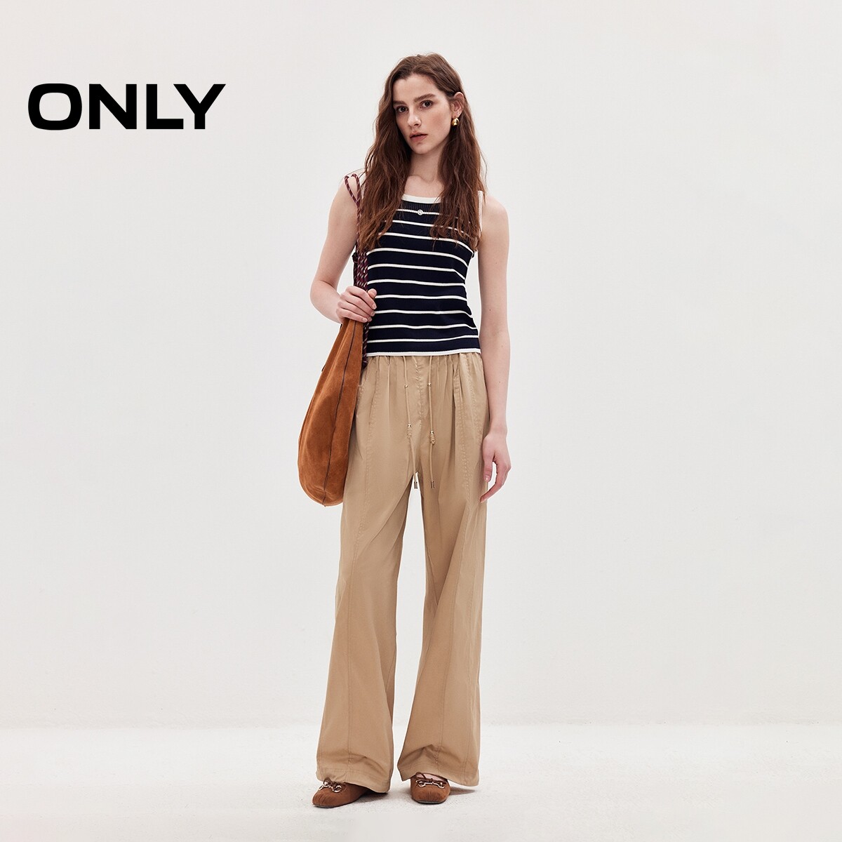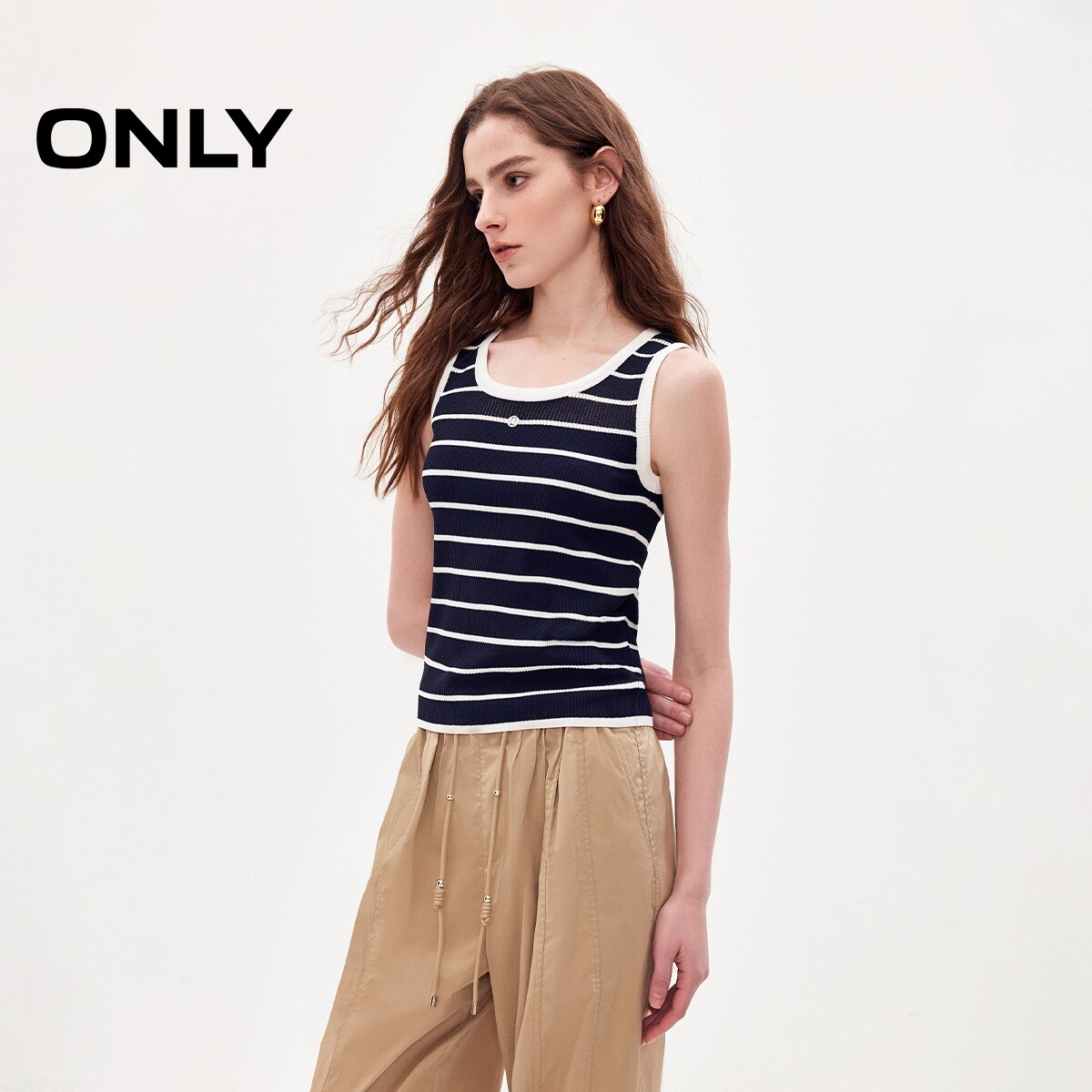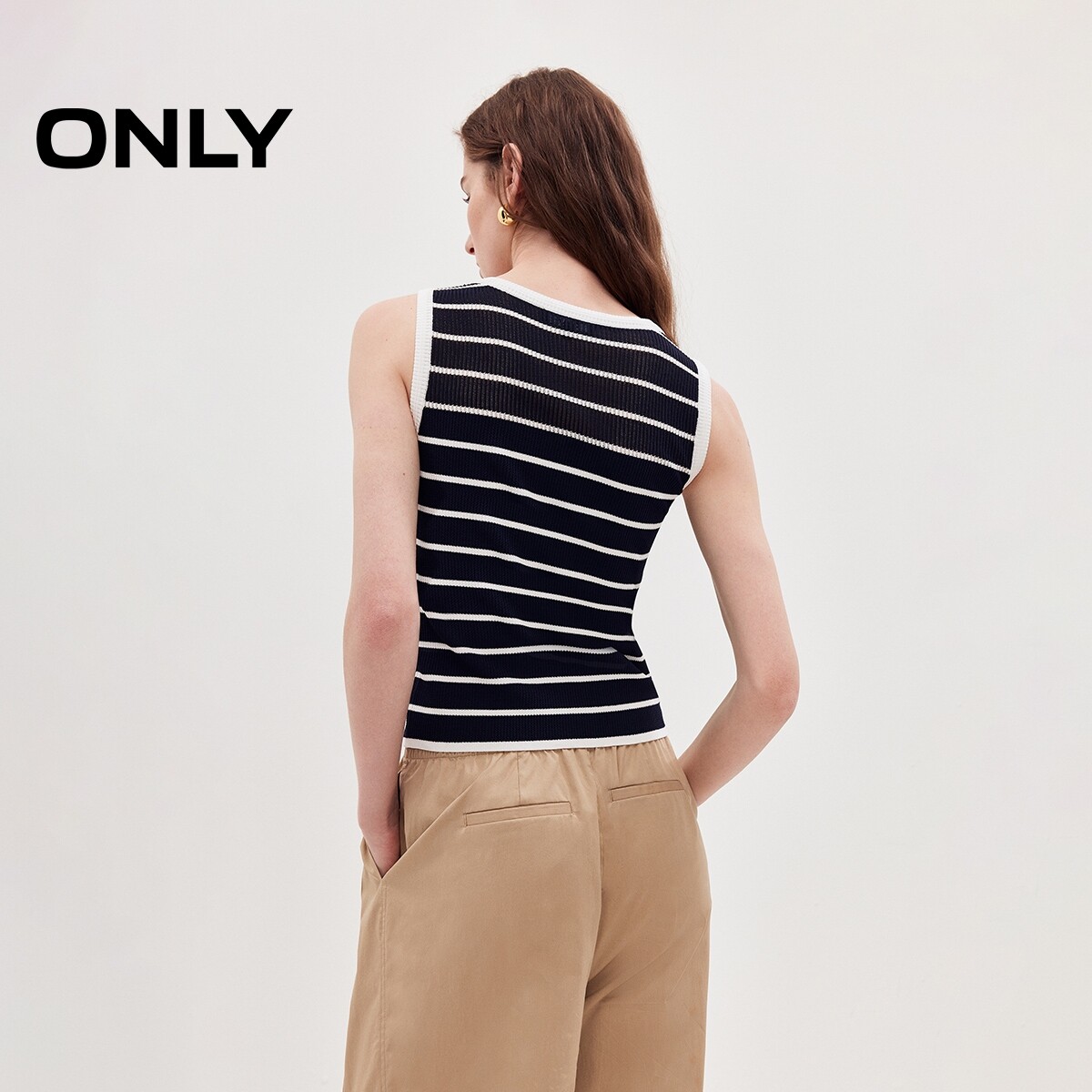 ONLY2026夏季新款通勤清凉无袖黑白条纹短款上衣微透针织衫女