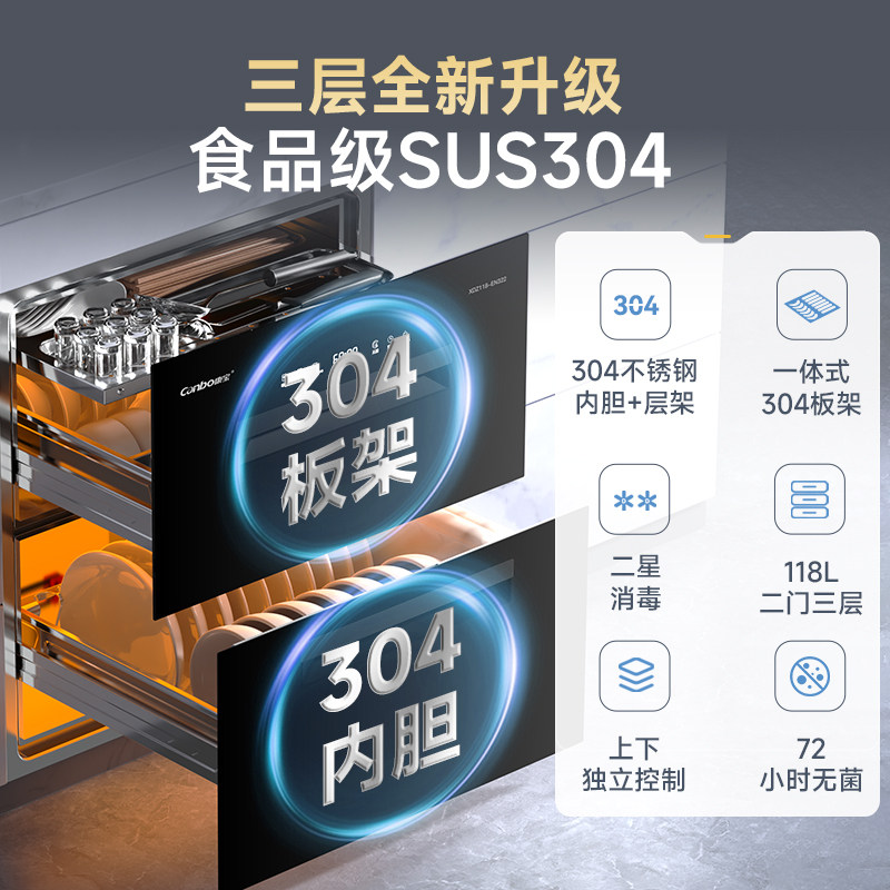 康宝消毒柜嵌入式新款磐石家用消毒碗筷柜烘干一体118升大容量