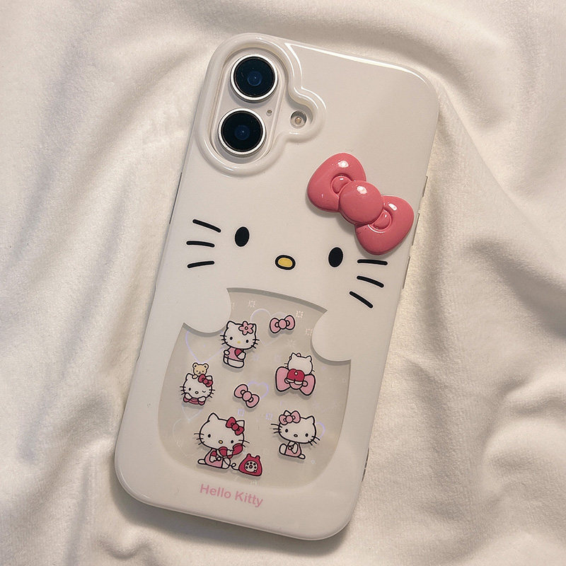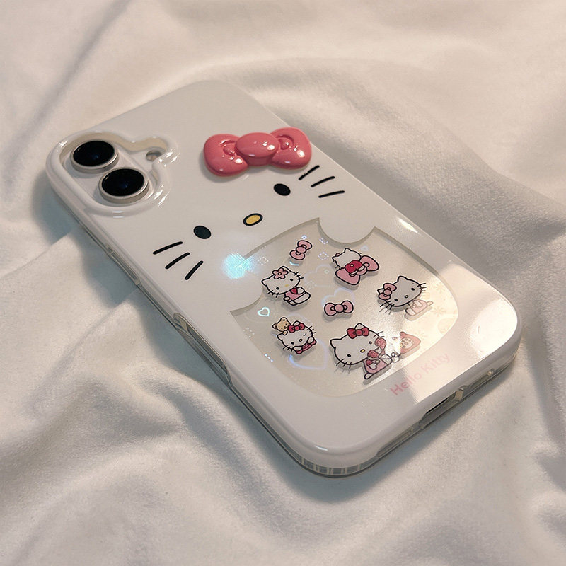 可爱白色kitty爱心镭射适用苹果16promax手机壳17pro新款iphon13软萌14pro女款15硅胶16pro防摔17卡通全包硬