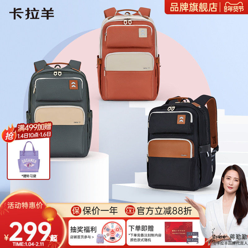 卡拉羊中学生书包减负风琴书包男女生青少年书包小学生书包儿童双肩包男孩大容量女孩防水书包品牌旗舰正品
