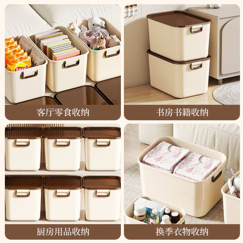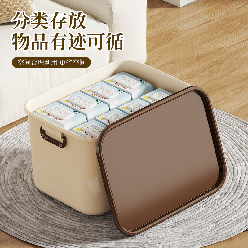 奶油棕色收纳箱家用大容量超大塑料整理箱衣服衣物加厚手提储物箱