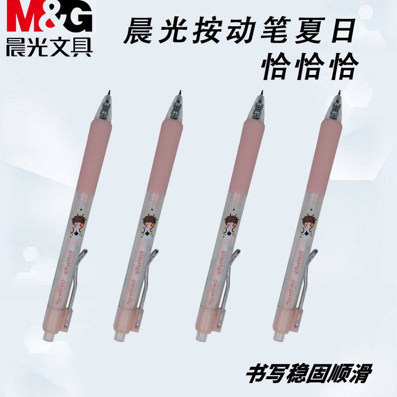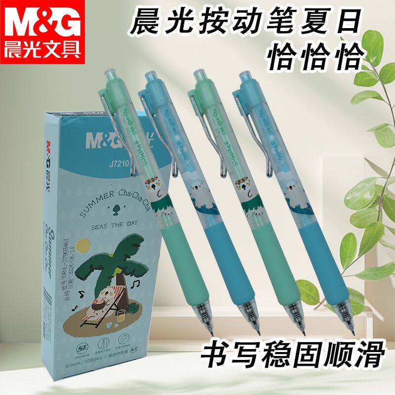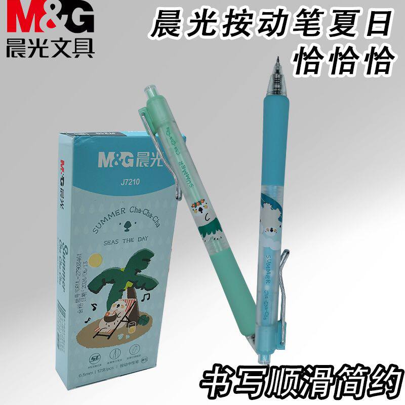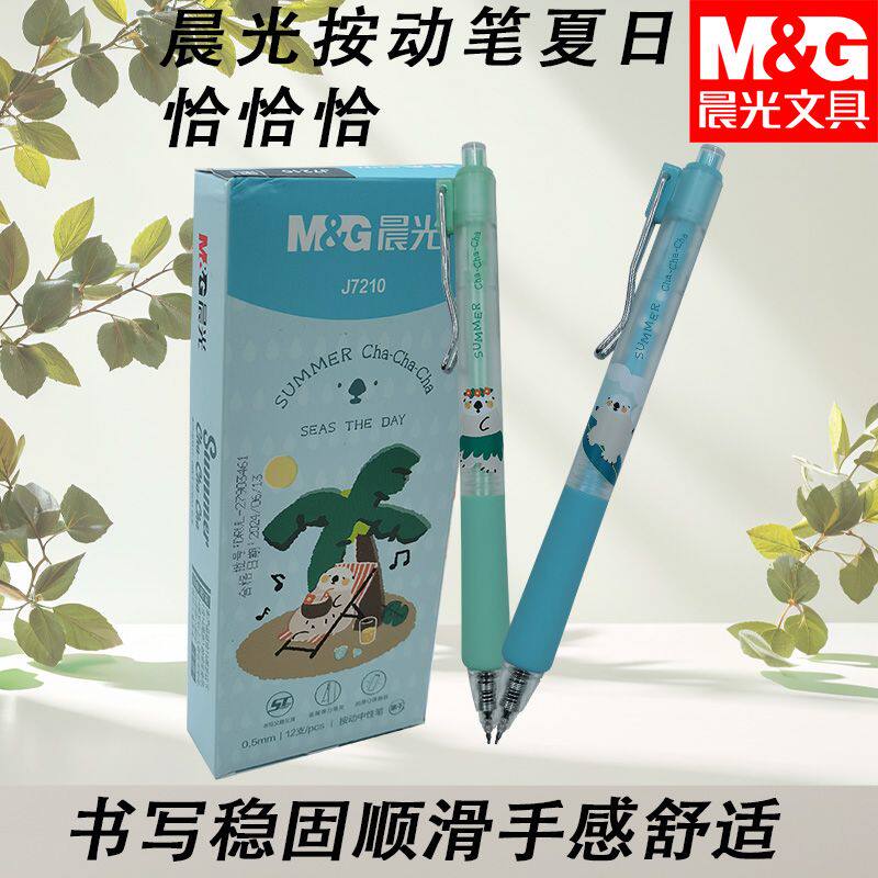 晨光AGPJ7210学生书写夏日恰恰恰st黑0.5mm速干中性按动笔按动笔