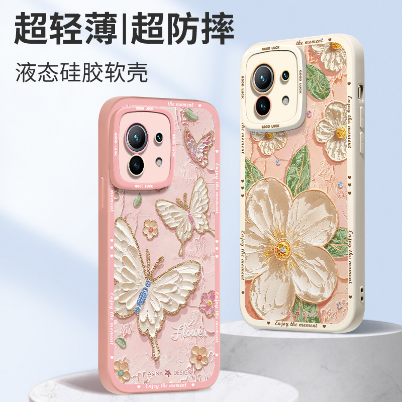 油画花粉适用小米17Promax手机壳新款小米15液态硅胶12s保护套女文艺创意Ultra夏季全包13网红米k60超薄软14