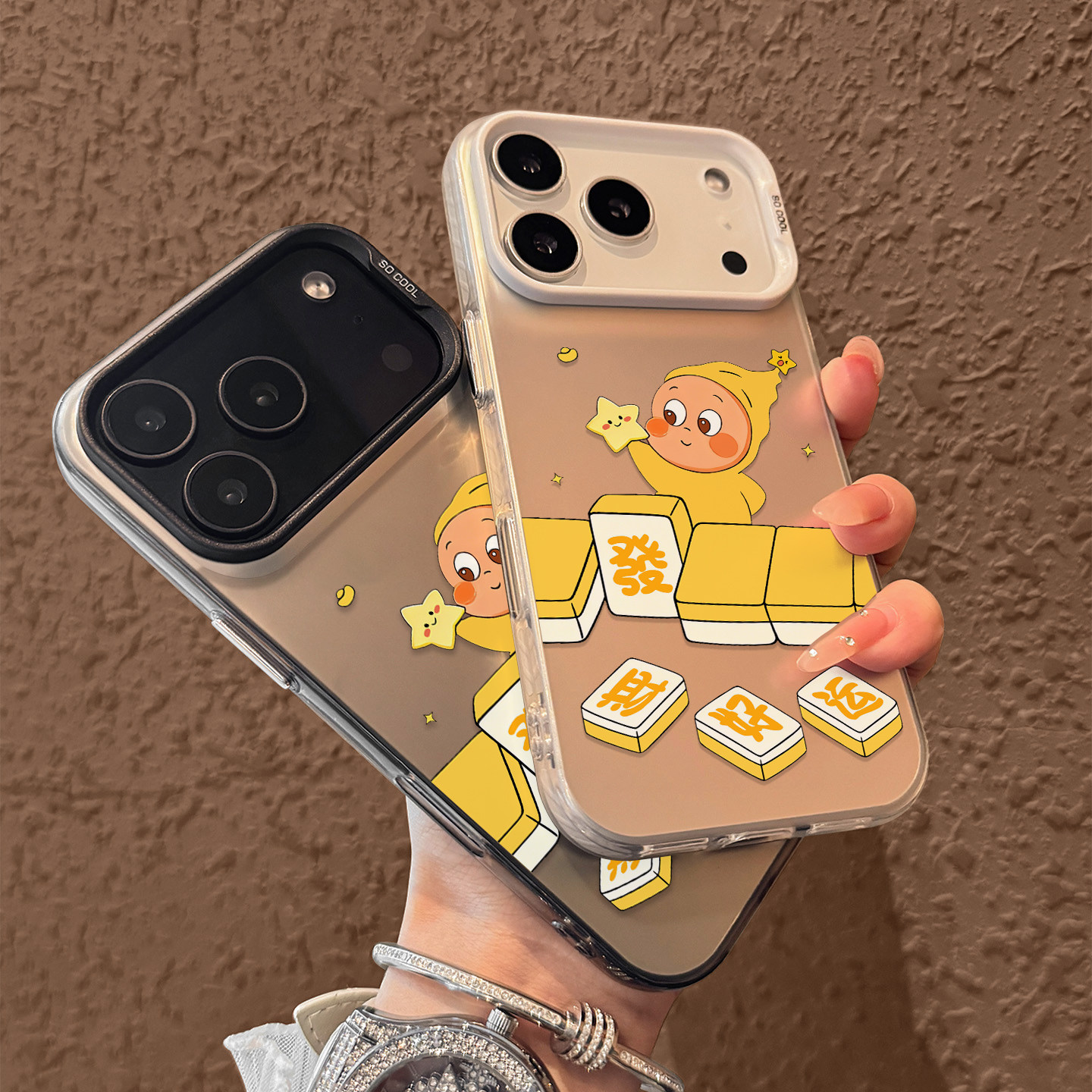 可爱星星人麻将适用iPhone17手机壳苹果17promax彩银磨砂壳17pro硬壳苹果air保护套ip17男女pro网红17卡通