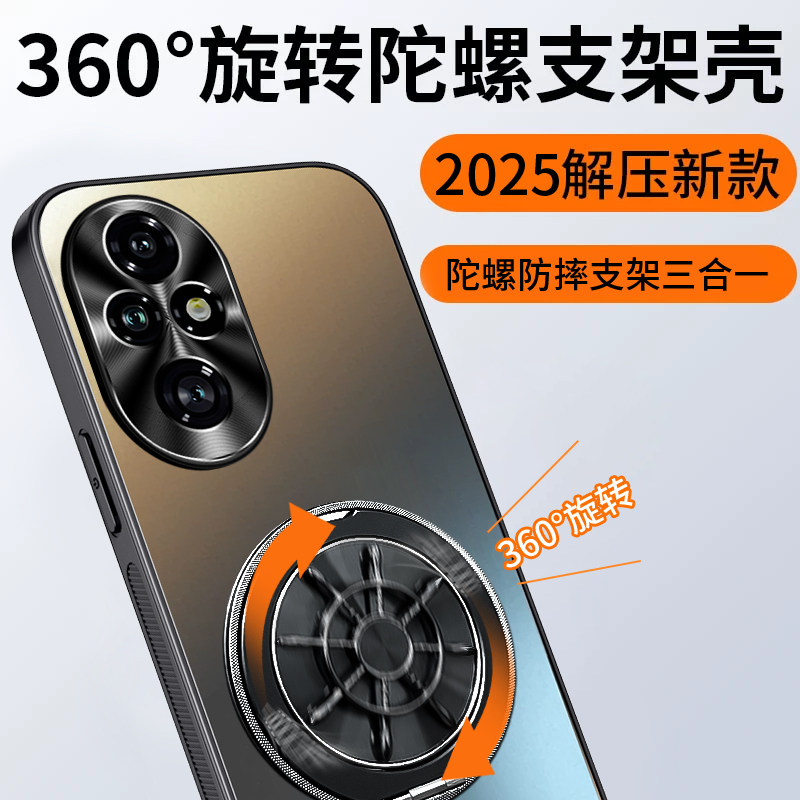 适用荣耀200手机壳新款华为荣耀200pro陀螺支架金属镜头全包荣耀100防摔磁吸支点外壳男100pro超薄女保护套