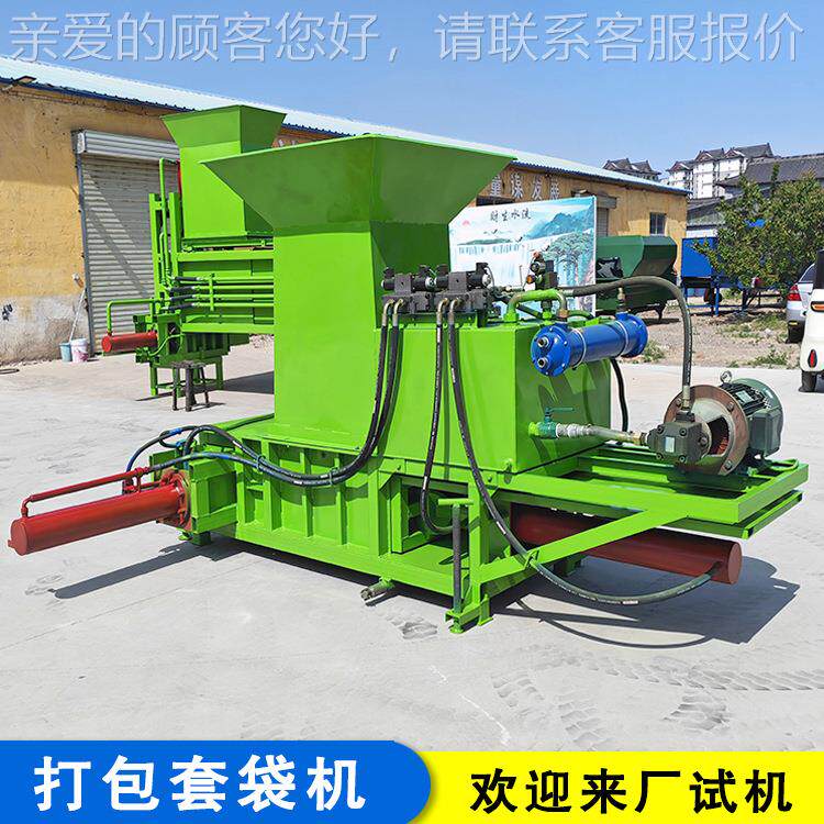青牛羊贮饲料套袋打机 粉屑碎包一体机BTI 大型 卧式木打包机