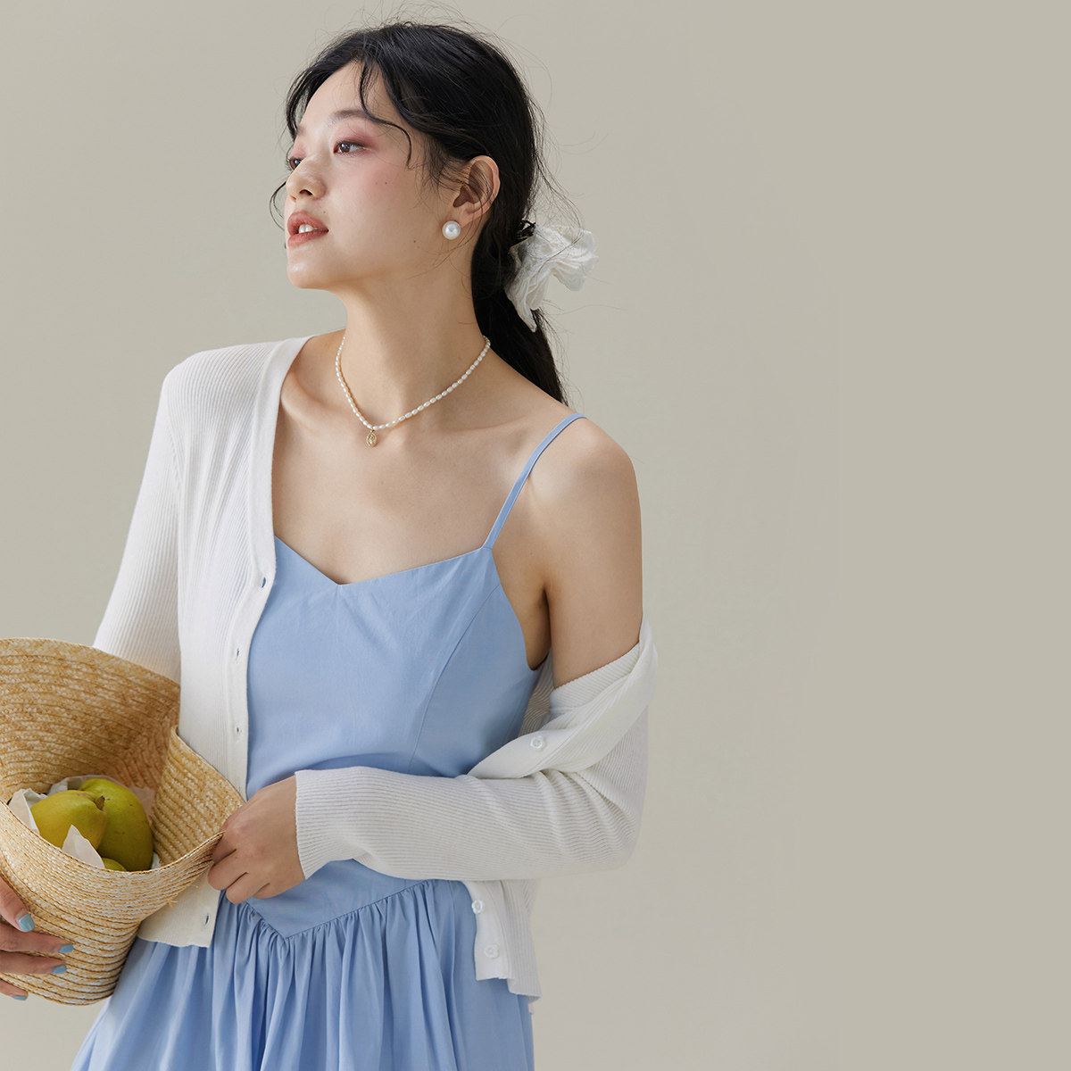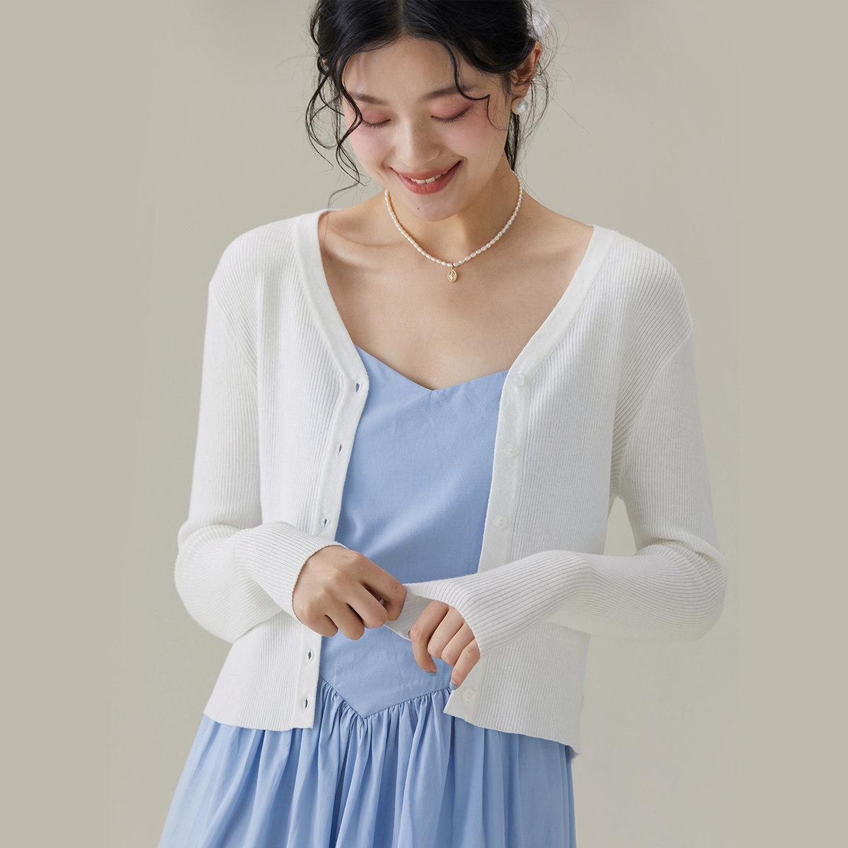 one more冰丝针织衫开衫女外穿长袖外搭披肩气质上衣百搭显瘦外套