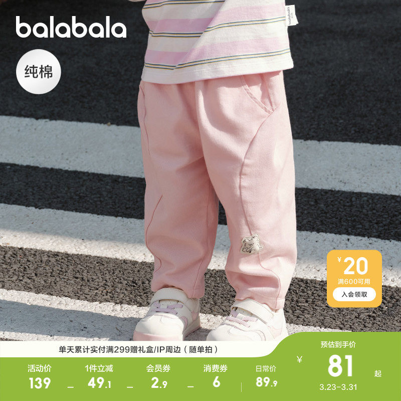 巴拉巴拉童装宝宝裤子男童长裤女童休闲裤2026春装新款萝卜裤婴儿