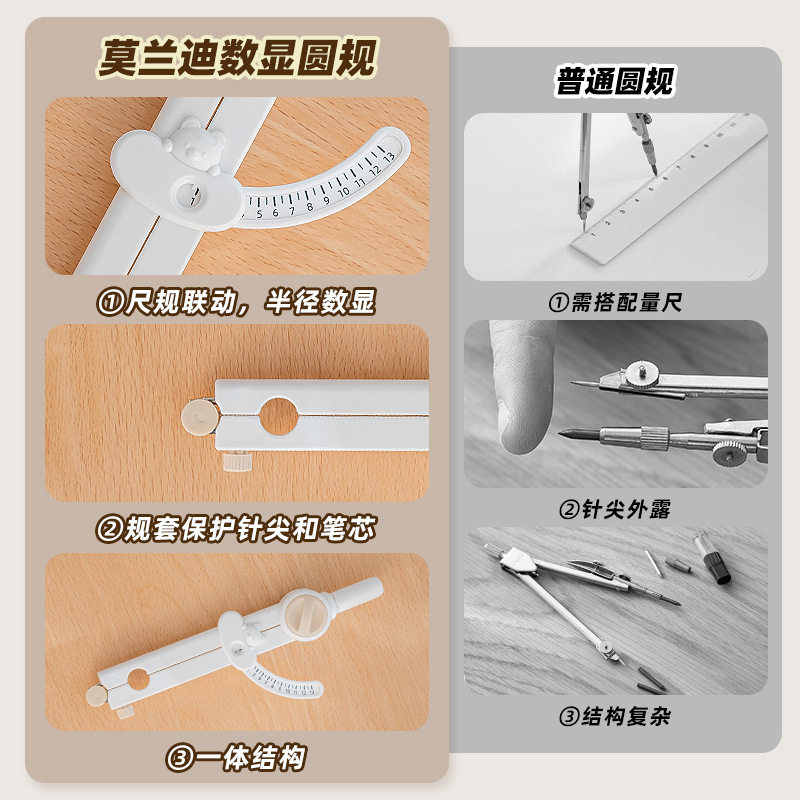 莫兰迪数显圆规高颜值小学生用画圆神器专业绘图套装儿童安全制图工具多功能锁距尺规初高中生附替换笔芯