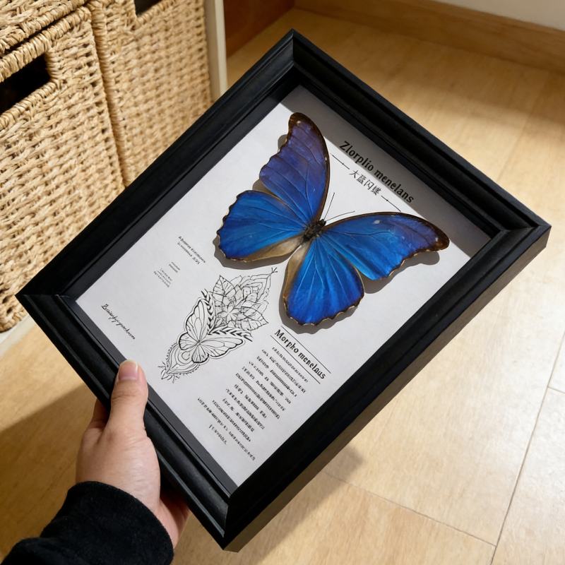 相框艺术闪蝶蝴蝶标本生日礼物挂画大蓝闪蝶展示框摆件装饰画卧室