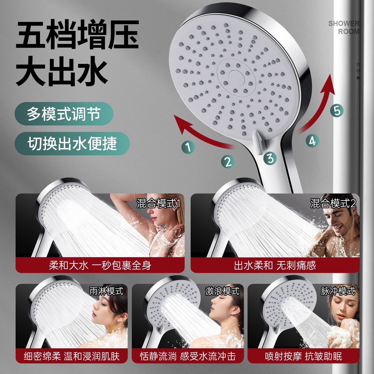 增压淋浴花洒洗澡淋雨喷头加压浴霸水龙头家用浴室套装沐浴热水器