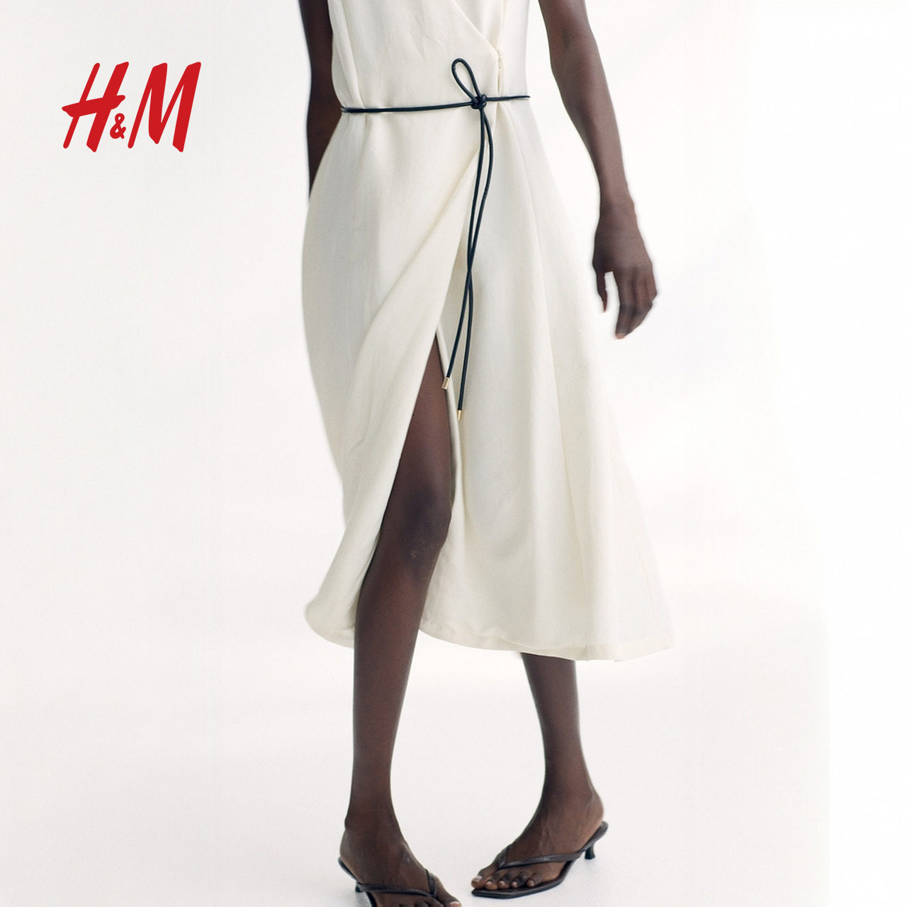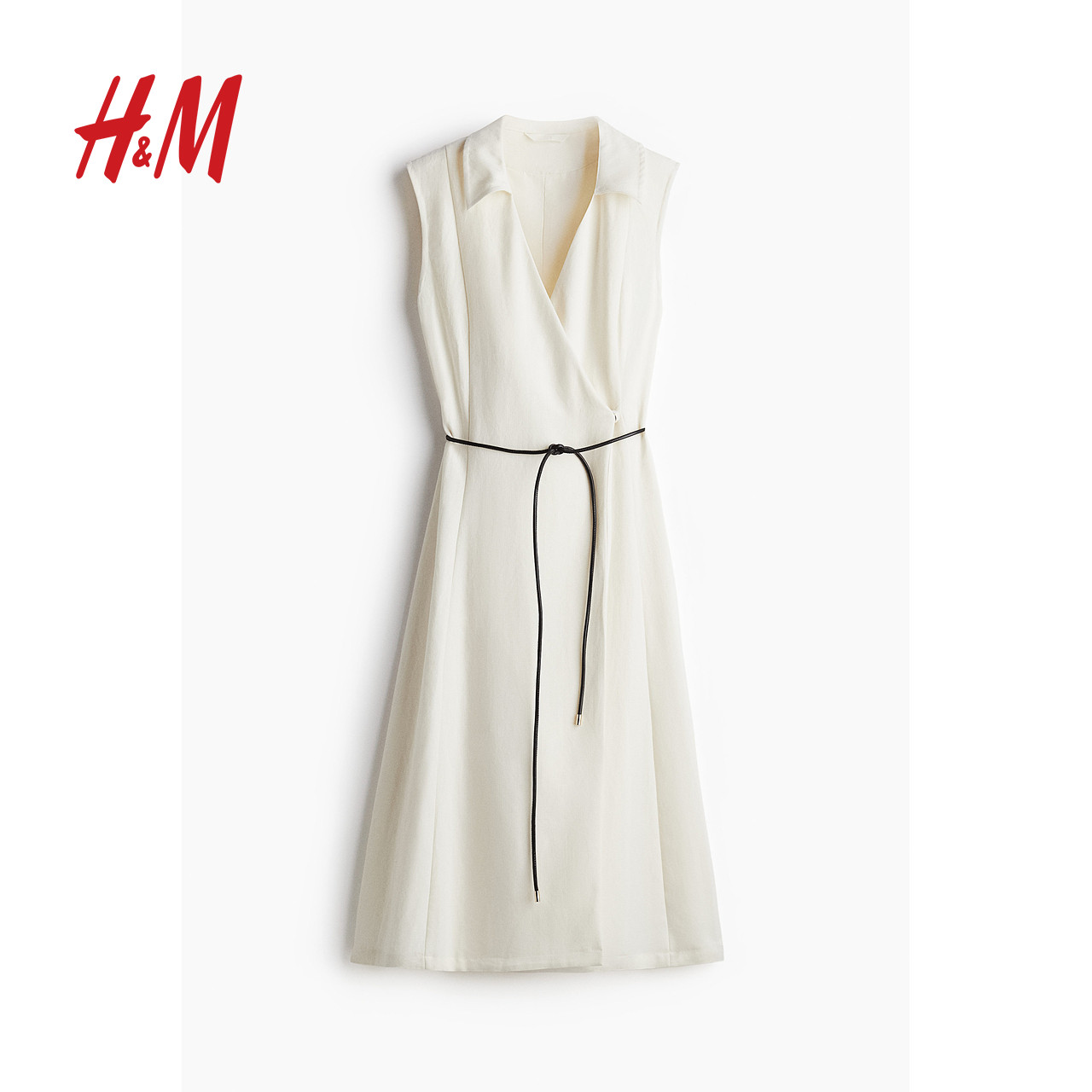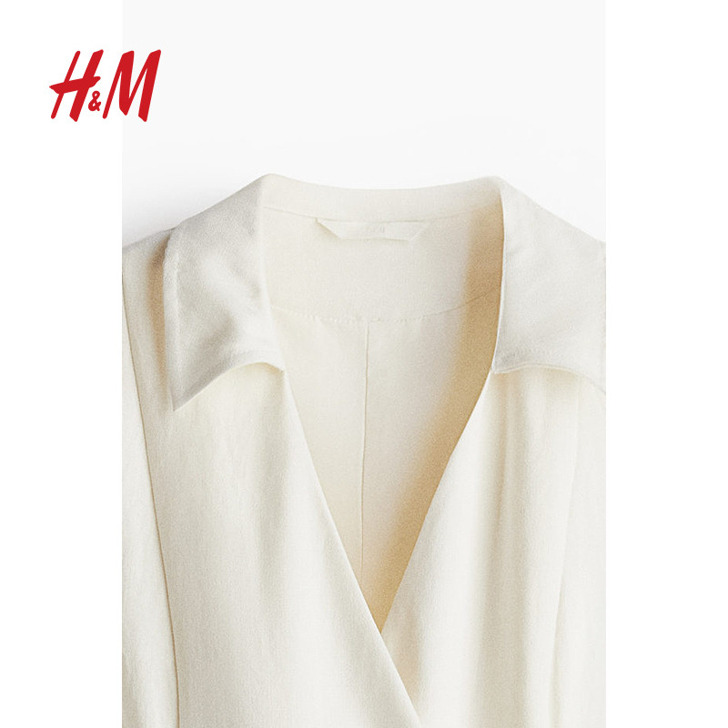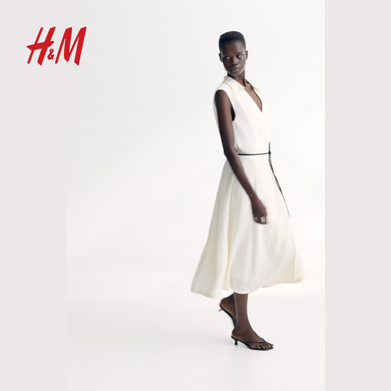 HM女装连衣裙春季职场新贵风时尚腰部系带围裹式连身裙1285149