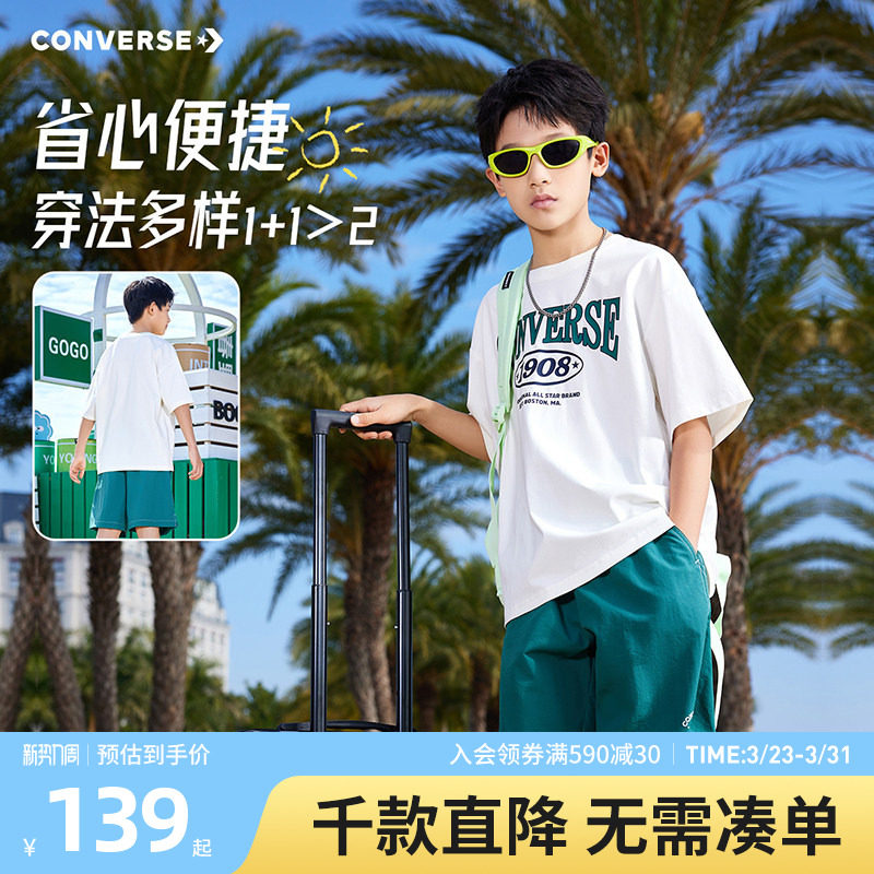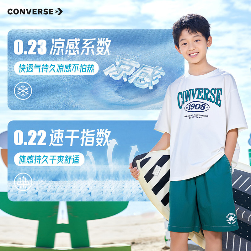 匡威童装男童套装2026夏季新款凉感舒适亲肤短袖T恤短裤两件套潮