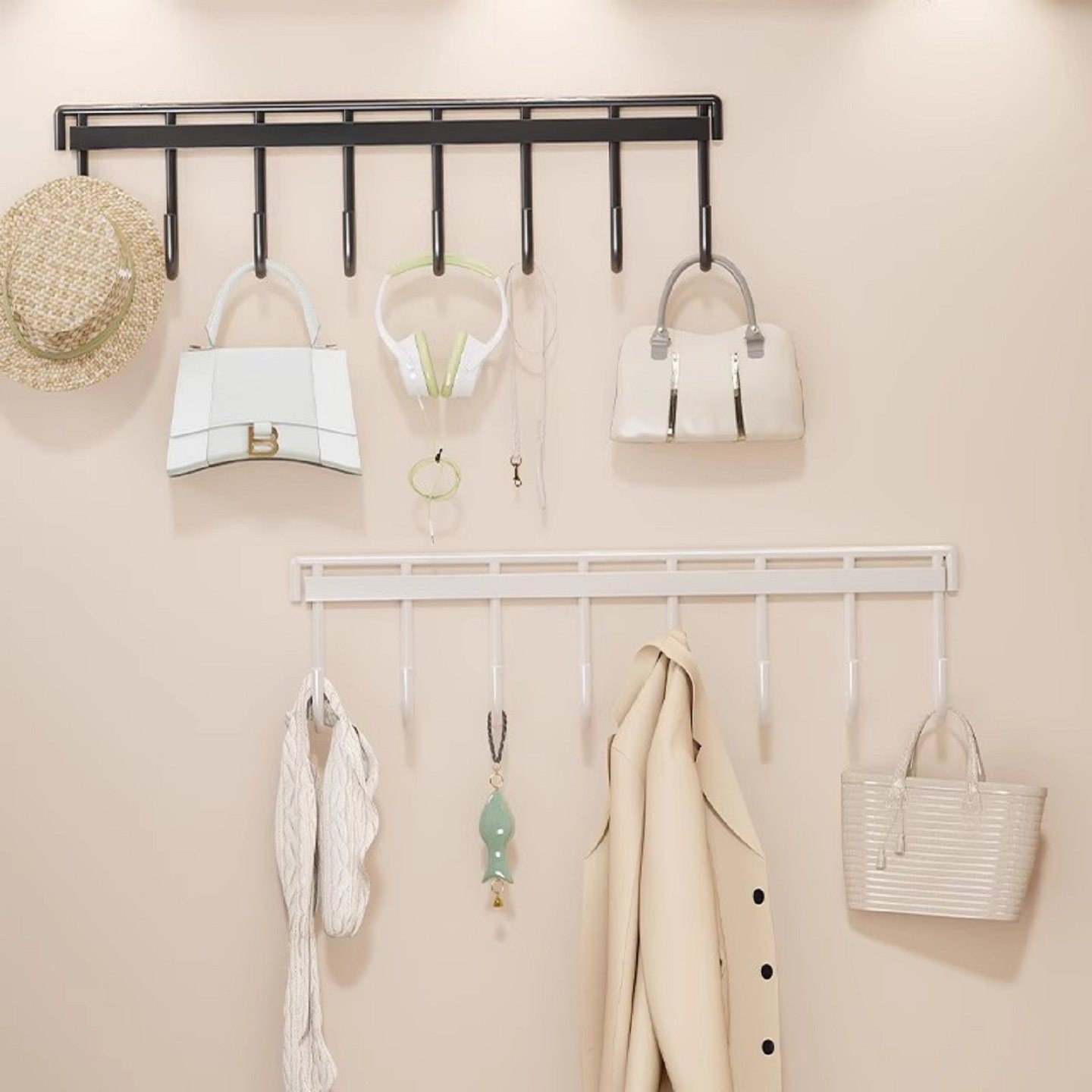 入户玄关挂钥匙排钩墙上挂衣架墙壁挂钩免打孔壁挂衣服置物架承重