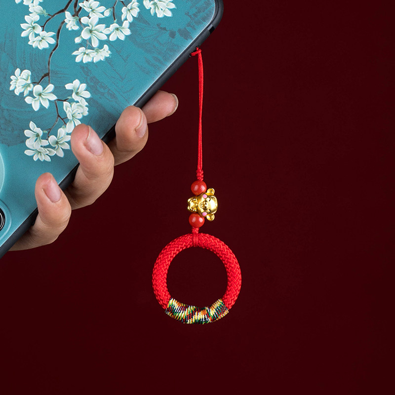 加噜马年新款十二生肖手机链挂绳手工编织指环扣手机挂绳女U盘吊坠钥匙扣挂件挂饰挂坠男挂件本命年红色绳子