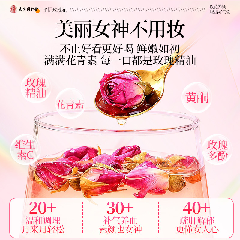 同仁堂玫瑰花茶官方旗舰店正品信盛堂疏肝解郁特级平阴玫瑰花干茶