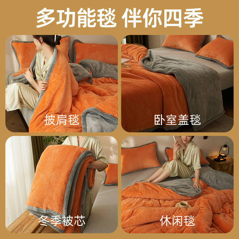 毛毯冬季加厚加绒床单被子珊瑚绒沙发毯办公室午睡毯床上用盖毯子